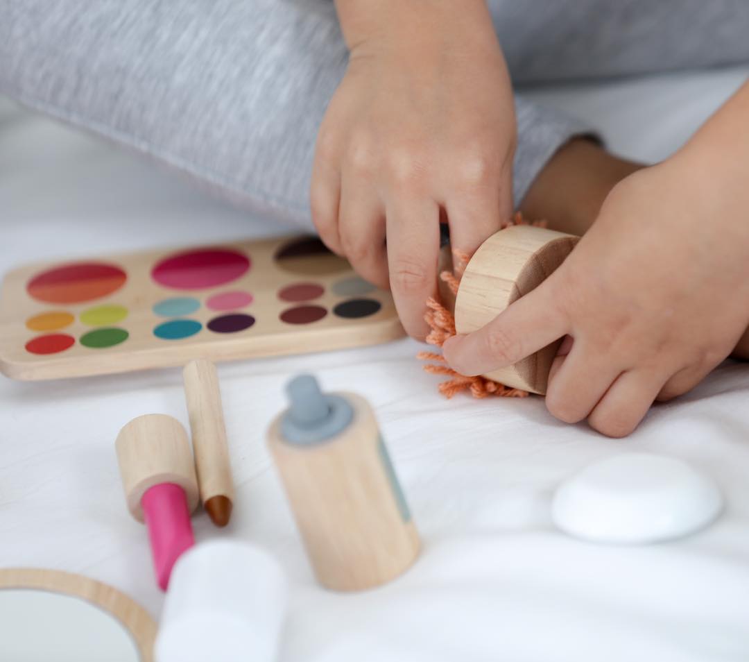 En rolig och spännande leksak för barn som intresserar sig för smink. Nu kan barnet leka makeup artist och sminka sig själv, sina föräldrar och kompisar, eller varför inte sina dockor? Setet består av en spegel, en borste och 5 olika sorters smink, samt en midjeväska.