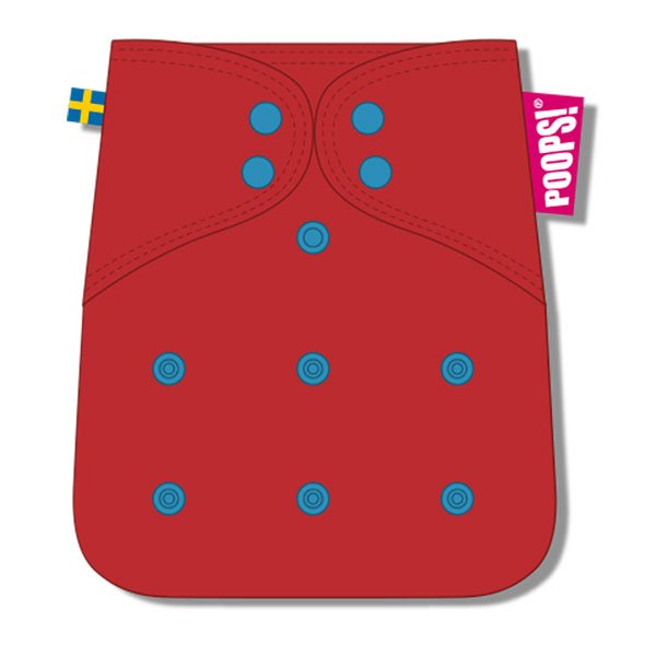 POOPS! All-in-One tygblöja är framtagen för att passa barn från ca 4-16 kg. Den har en unik passform och en speciellt framtagen läckbarriär för att förhindra läckage. Det yttre skiktet på blöjbyxan är tillverkat av en vattentät polyuretanbelagd polyester som andas men inte släpper igenom fukt. De kommer i två varianter bambu/bomull eller CoolPass. Båda modellerna har ett inlägg fastsytt i ena kanten, vilket kortar ned torktid och gör de enkla att använda.