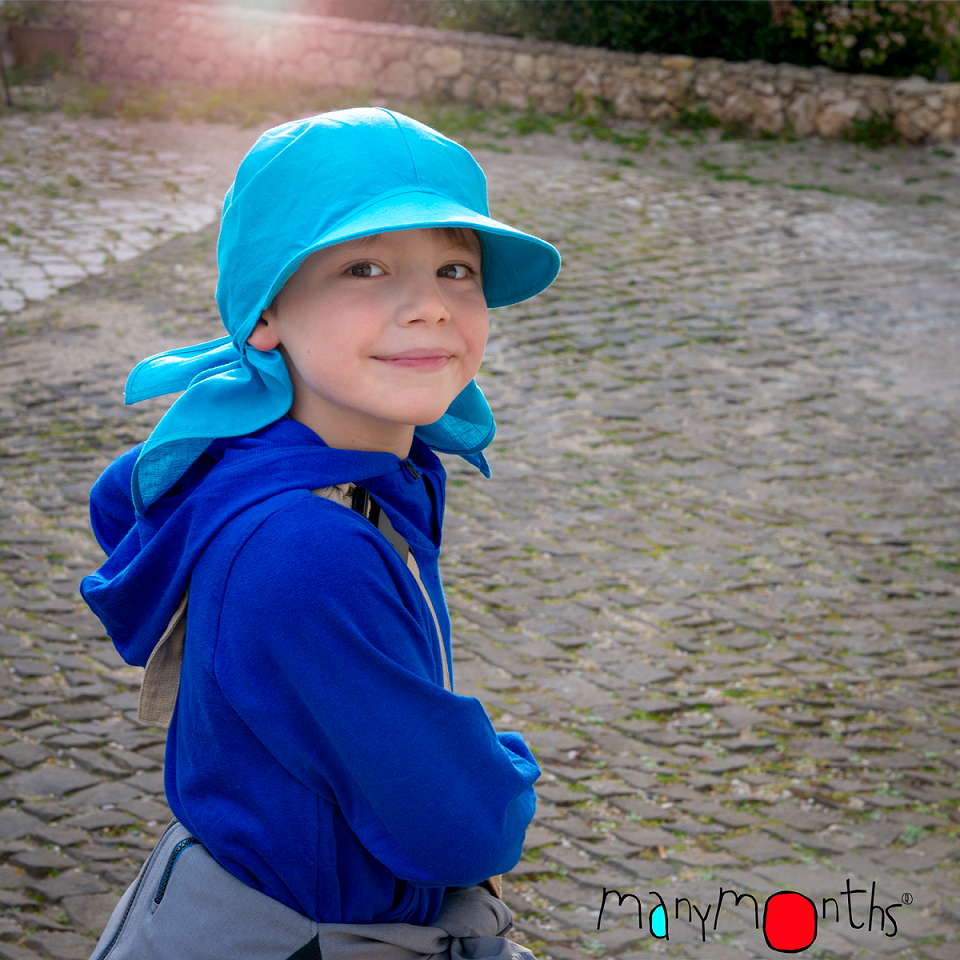 Denna scarfliknande solhatt ser inte bara bra ut och känns bra, utan är också lätt att använda. Visiret och tyget på halsen skyddar mot solen. Knyt enkelt på hatten, den växer med barnet. Tyget erbjuder ett naturligt UV-skydd. Hampa känns sval på sommaren även i varma och fuktiga klimat, vilket gör denna solhatt bekväm att bära.