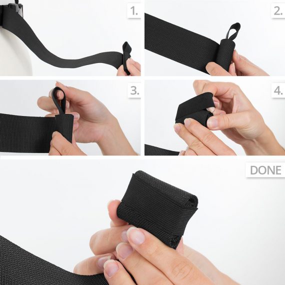 Banden på huvan är längre och därmed lättare att nå vid bärande på rygg.