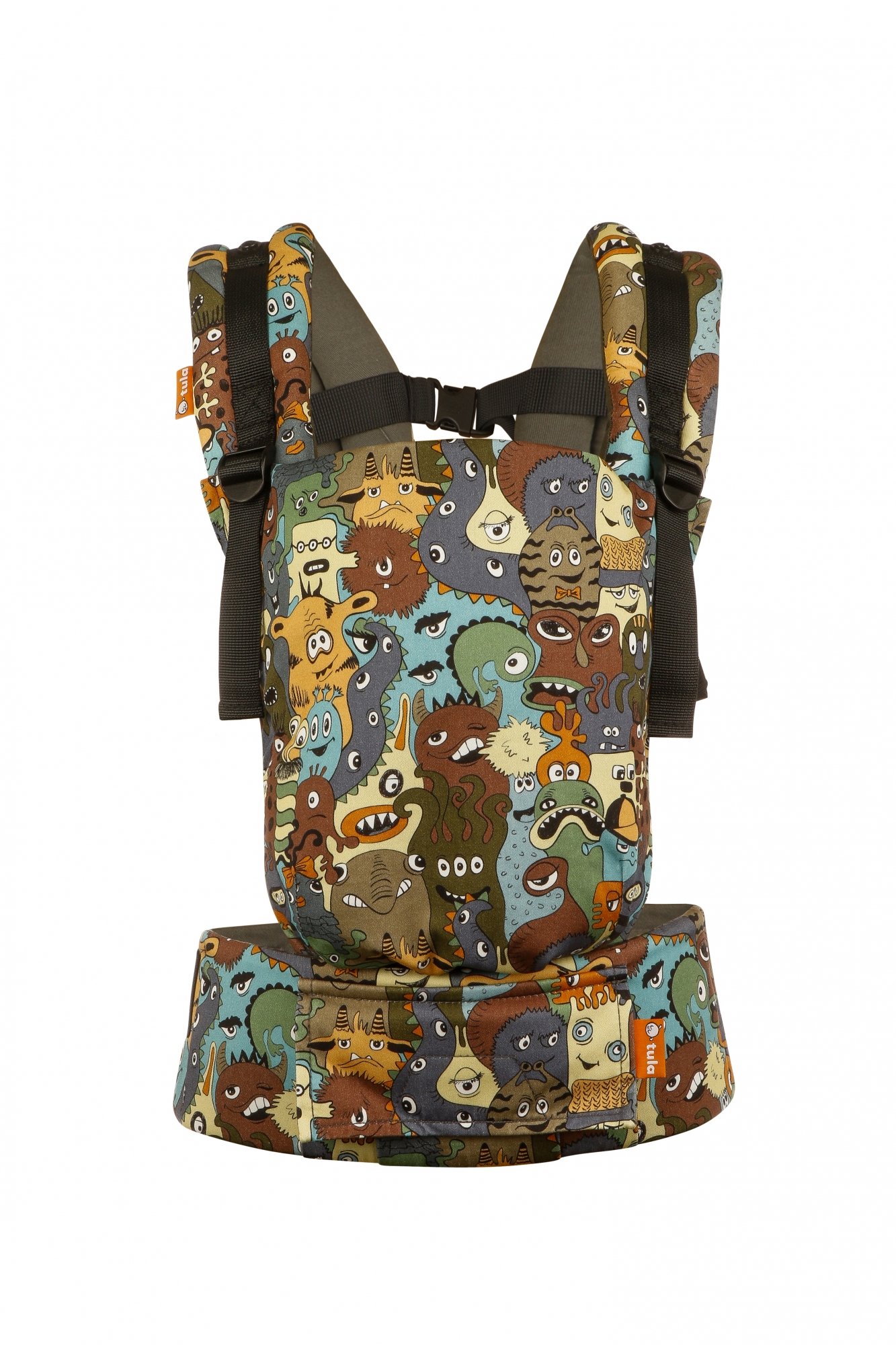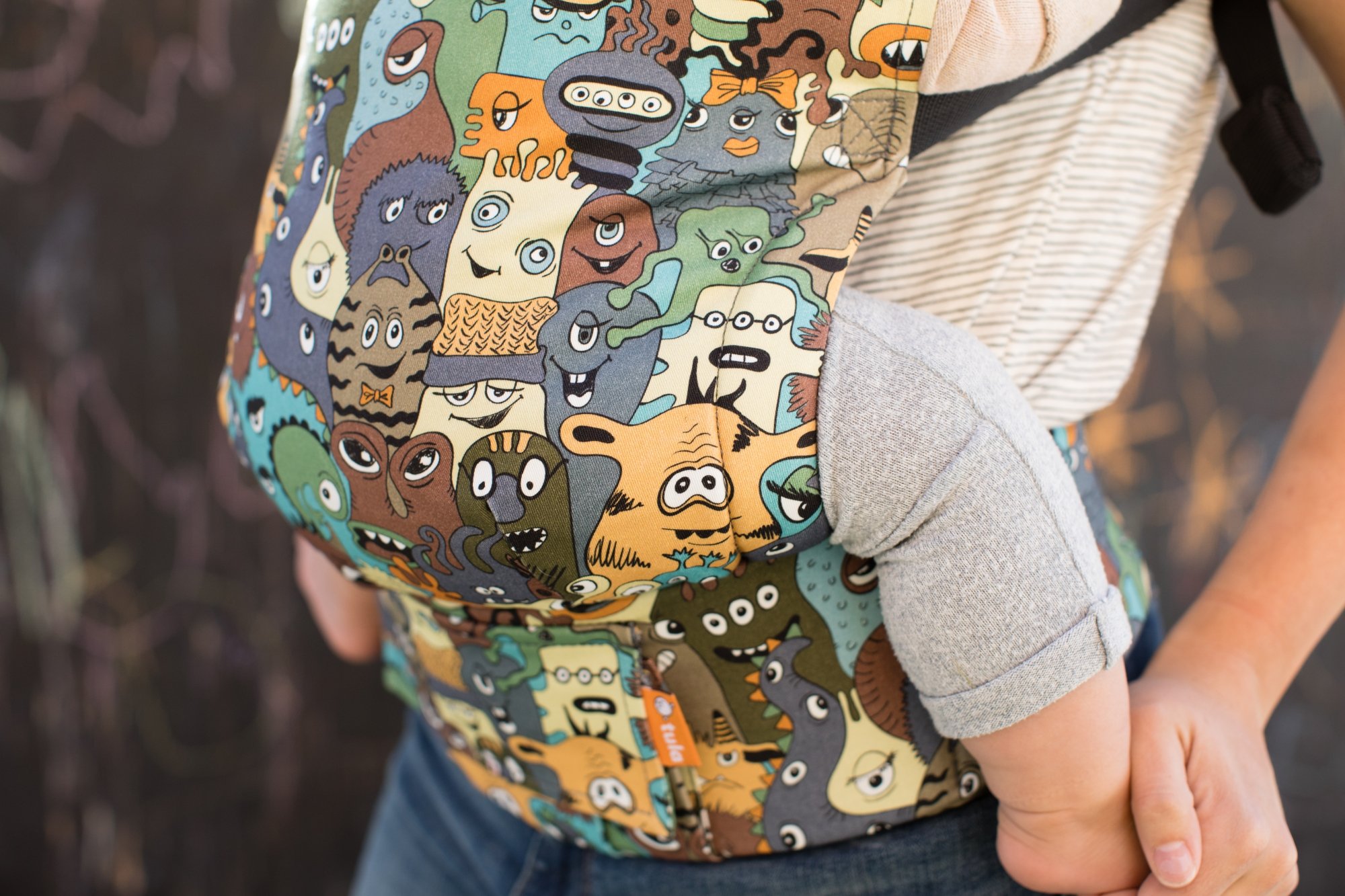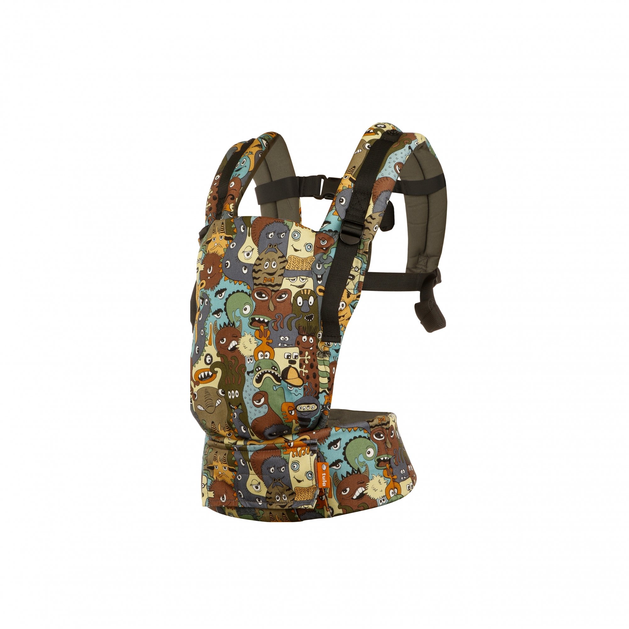 Mönstret på Tula Free to Grow sträcker sig över hela selen. “Eye Spy” har ett underhållande och kul mönster med massvis av roliga monster. Med selen ingår en matchande justerbar huva som går att ta av samt en instruktionsbroschyr på engelska.
