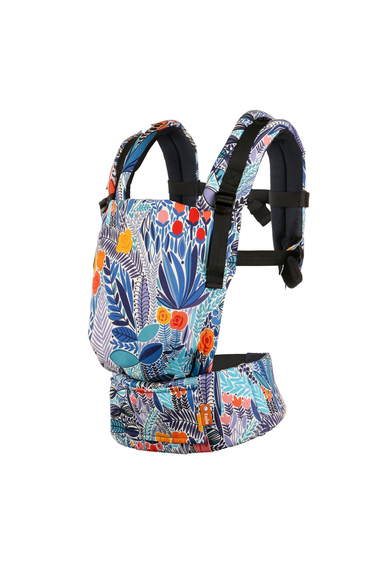 Mönstret på Tula Free to Grow sträcker sig över hela selen. “Mystic Meadow” har ett unikt mönster med illustrationer av blommor och växter, rika nyanser av blått, rött och gult skapar en fantastisk scen av en frodig äng. Med selen ingår en matchande justerbar huva som går att ta av samt en instruktionsbroschyr på engelska.