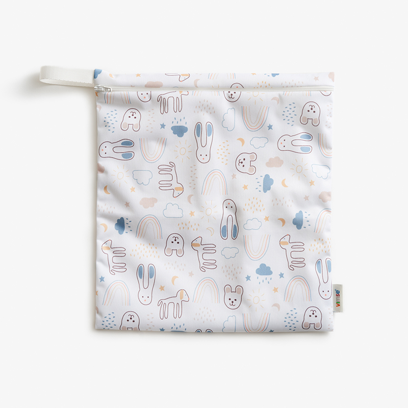 Små barn betyder mycket prylar, men vi har påsarna som underlättar i vardagen. Vimses användbara PUL-påse är mjuk, tvättbar och tillverkad av laminerad polyester. Den stora påsen passar perfekt till tygblöjor, fuktiga badkläder och smutsiga bebiskläder. Smidig som packpåsar på resan, förvaring på dagis eller hemma vid skötbordet.Finns i tre olika storlekar. Väskorna har dragkedja och rem med knapp som kan användas för att fästa i väska eller runt barnvagnen.