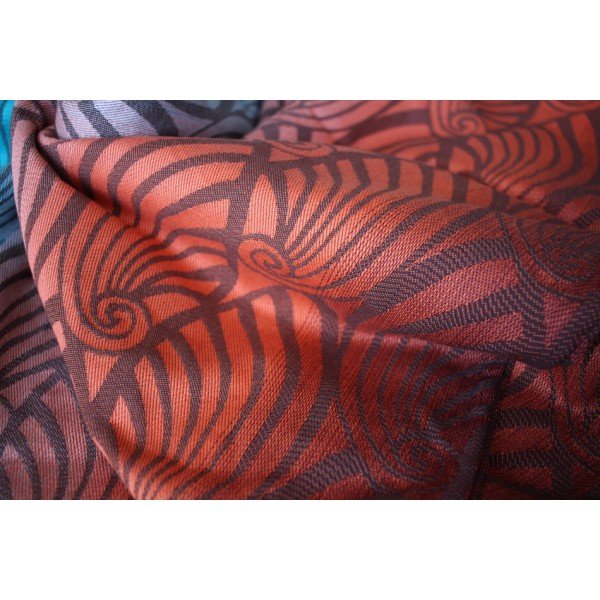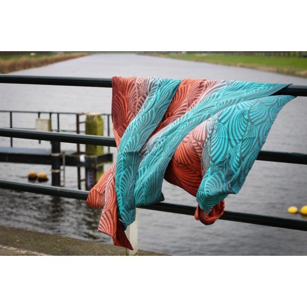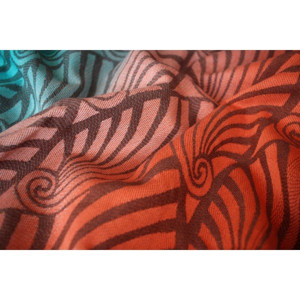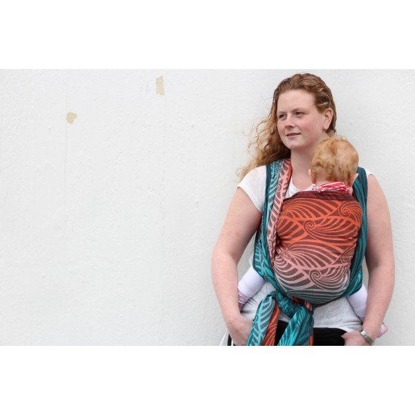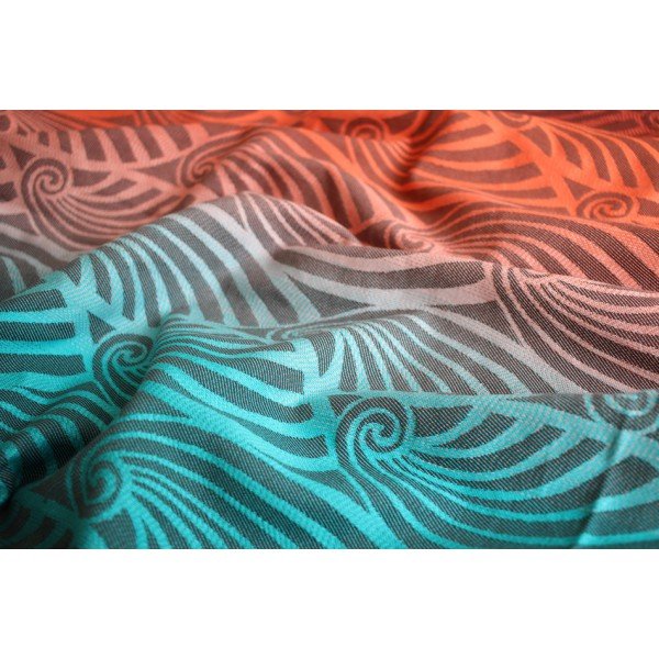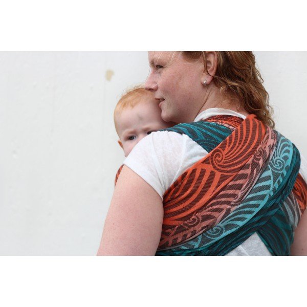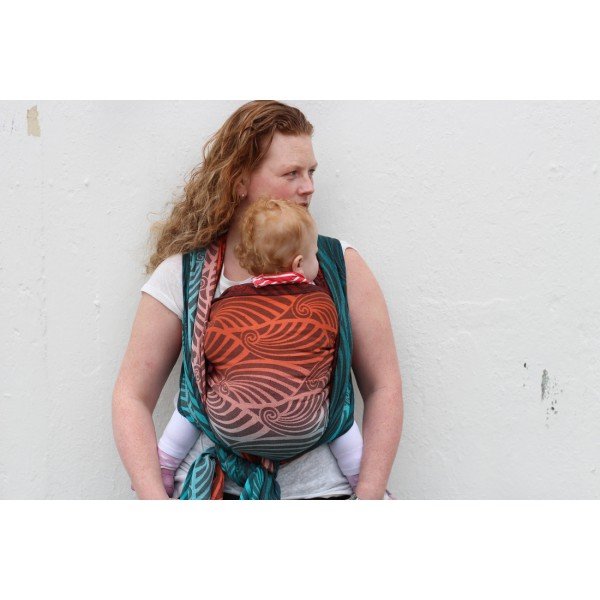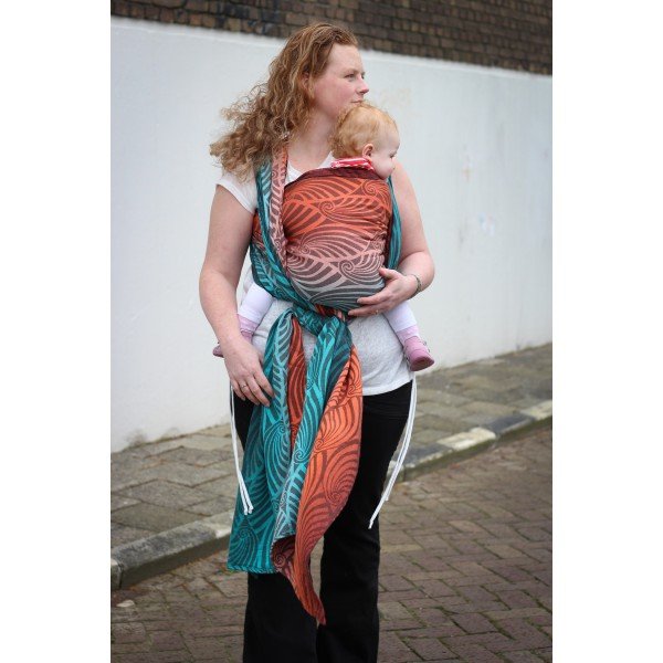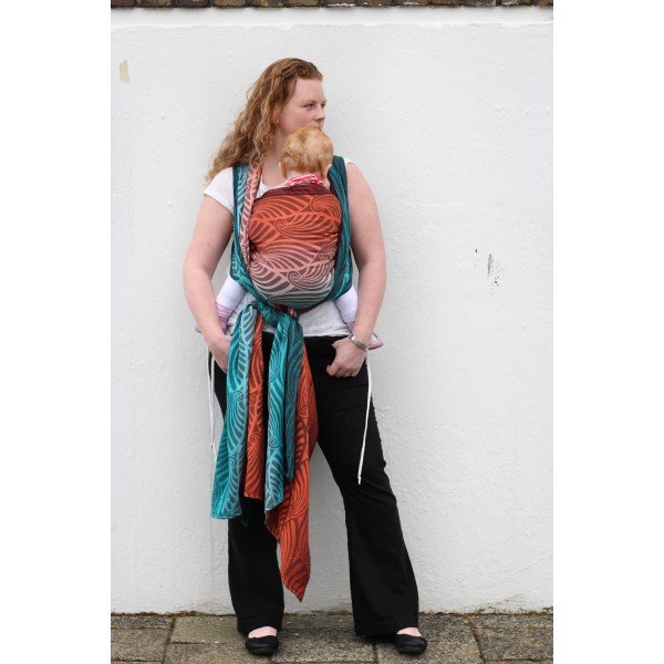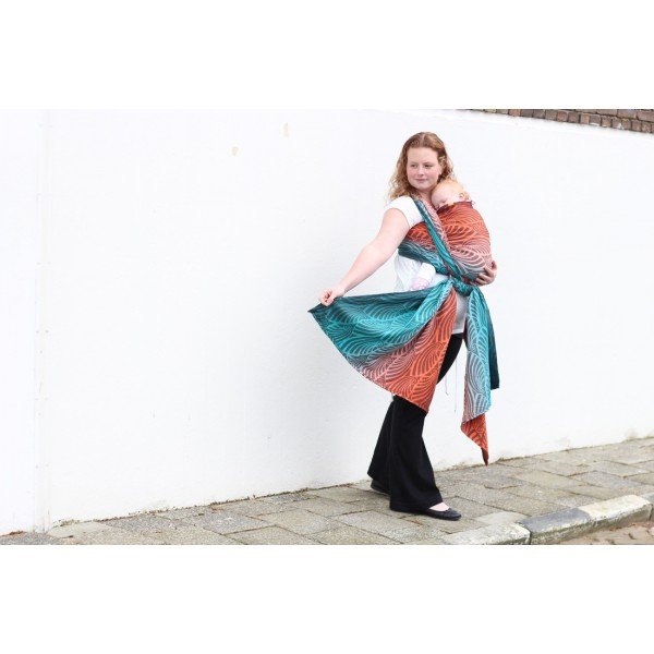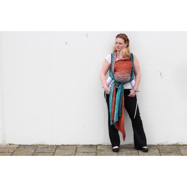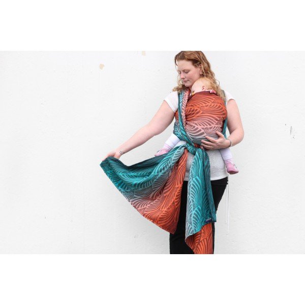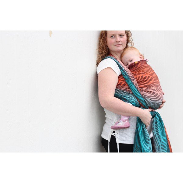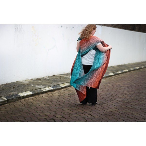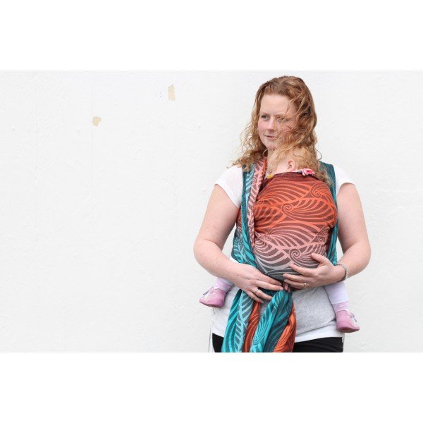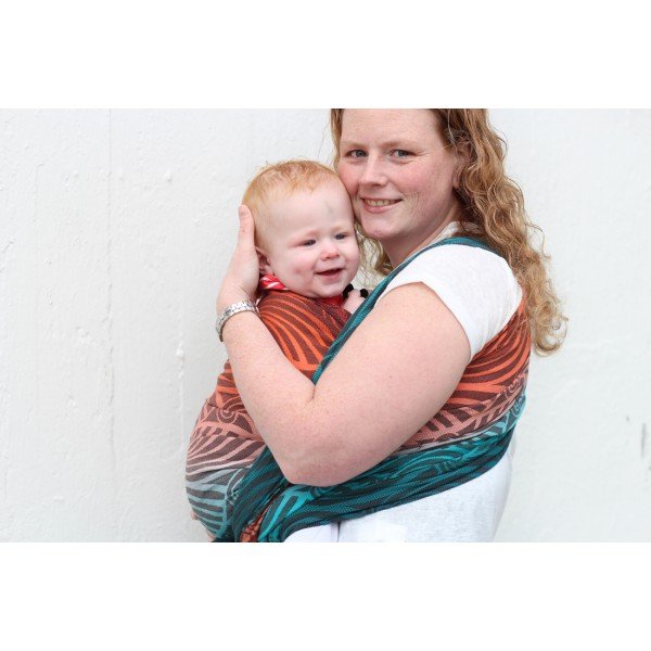 Yaro Dandy Arctic Sunset Grad Cedar Organic är en vacker sjal i ekologisk bomull, stark men lätt att bryta in. Passar nybörjare och mer avancerade. Bekväm att bära både små barn som lite större. Mönstret bidrar till lite textur som gör att den lättare blir greppig, dock glider den ändå lätt när man knyter och justerar knytet.