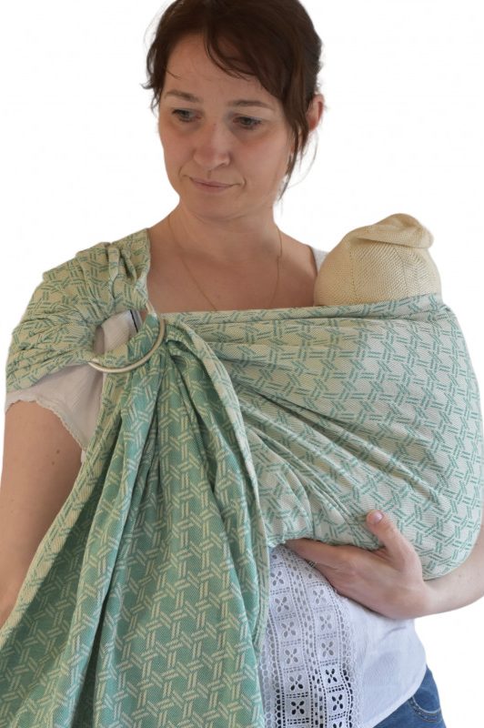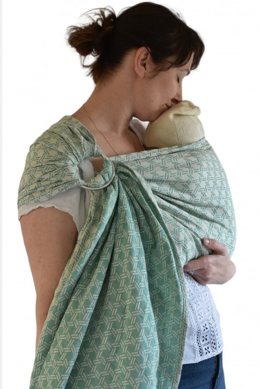 Med en ringsjal kan du snabbt och lätt bära ditt barn, du trär tyget genom ringarna, sätter i barnet och spänner enligt instruktionerna. Observera att det inte är rekommenderat att bära barnet i position “vagga” då det kan leda till att barnet inte får fria luftvägar.