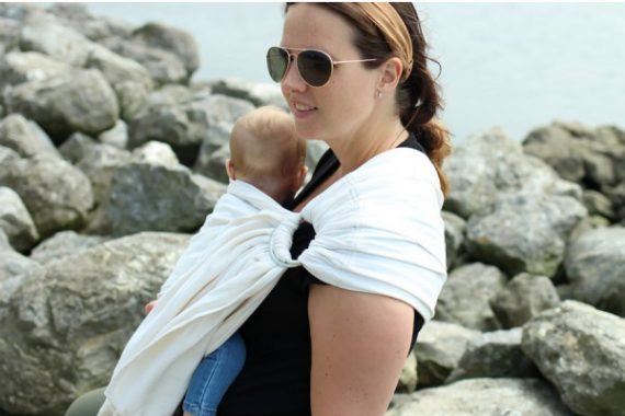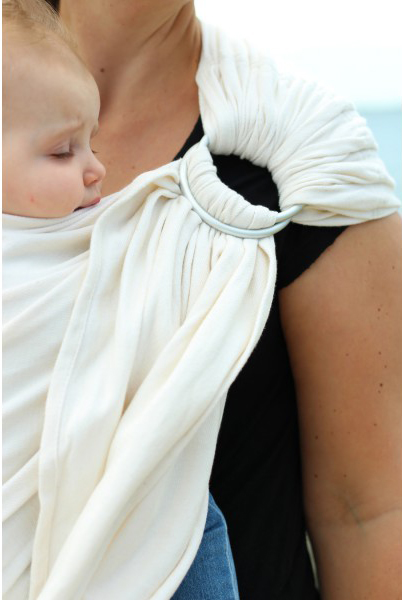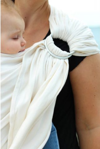 Med en ringsjal kan du snabbt och lätt bära ditt barn, du trär tyget genom ringarna, sätter i barnet och spänner enligt instruktionerna. Observera att det inte är rekommenderat att bära barnet i position “vagga” då det kan leda till att barnet inte får fria luftvägar.
