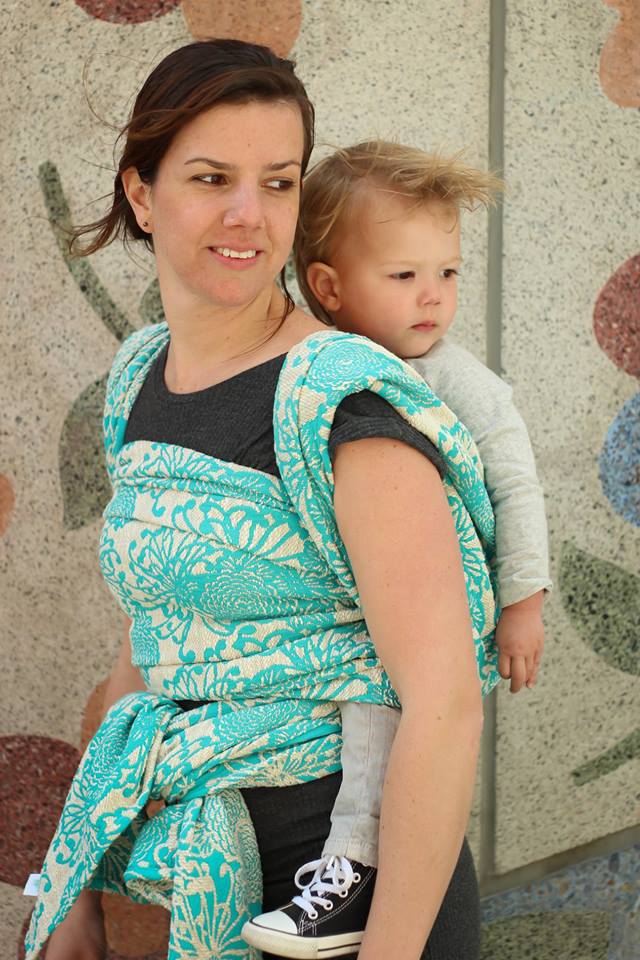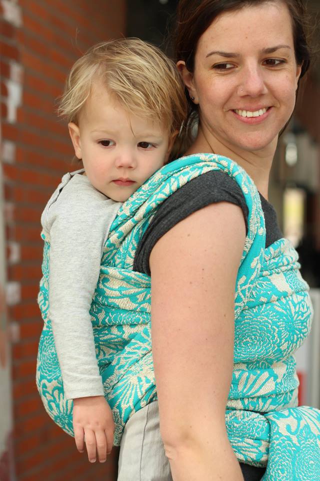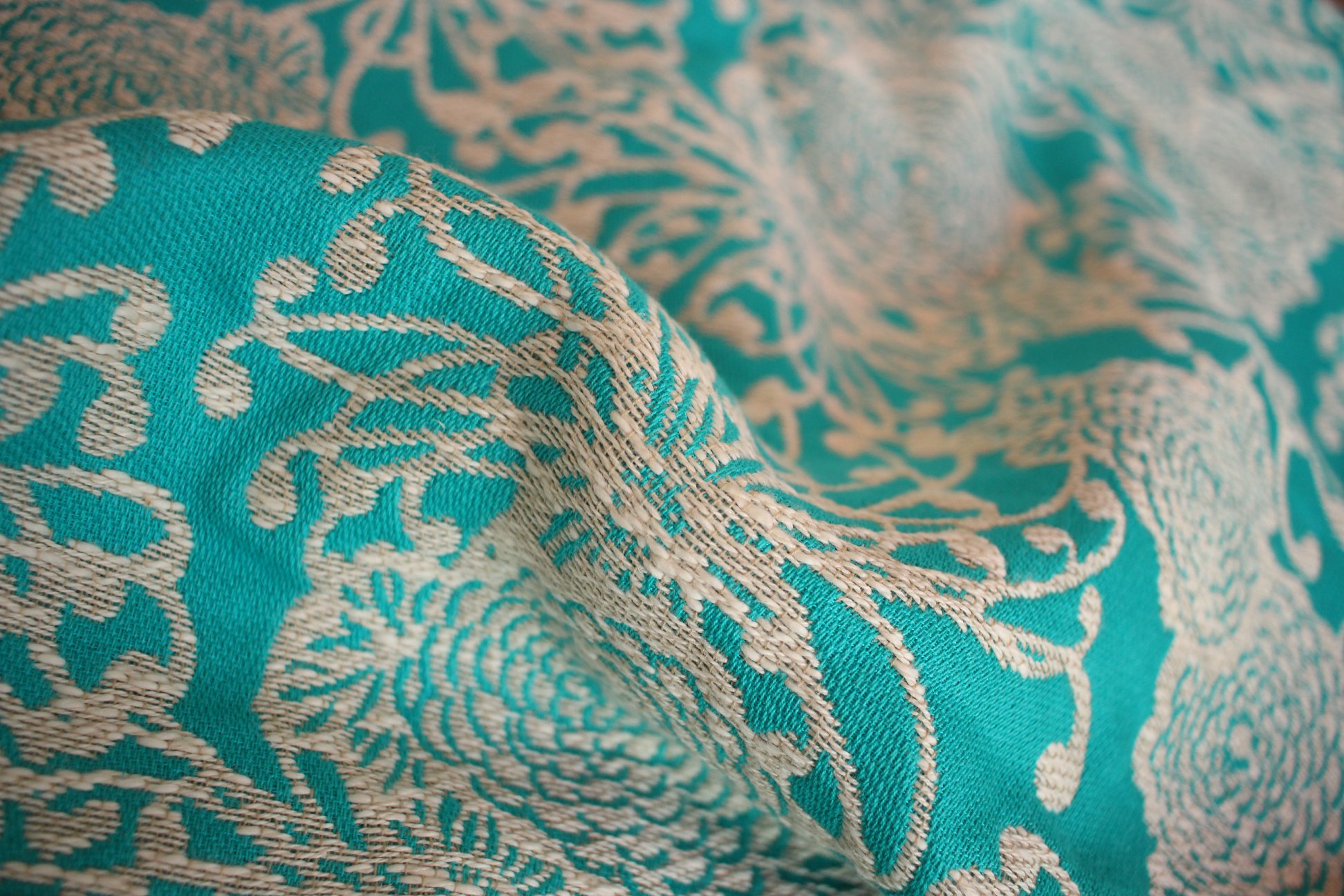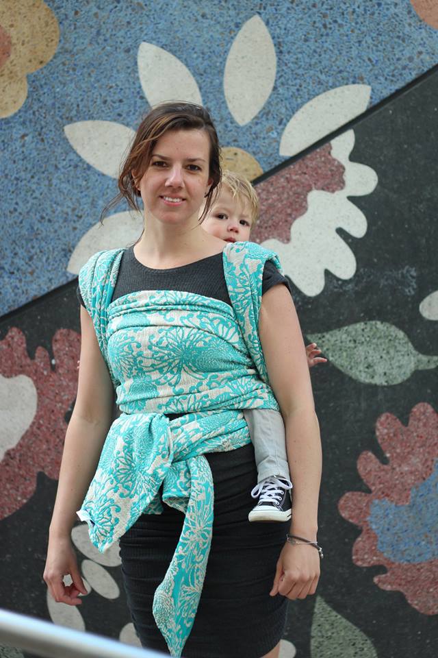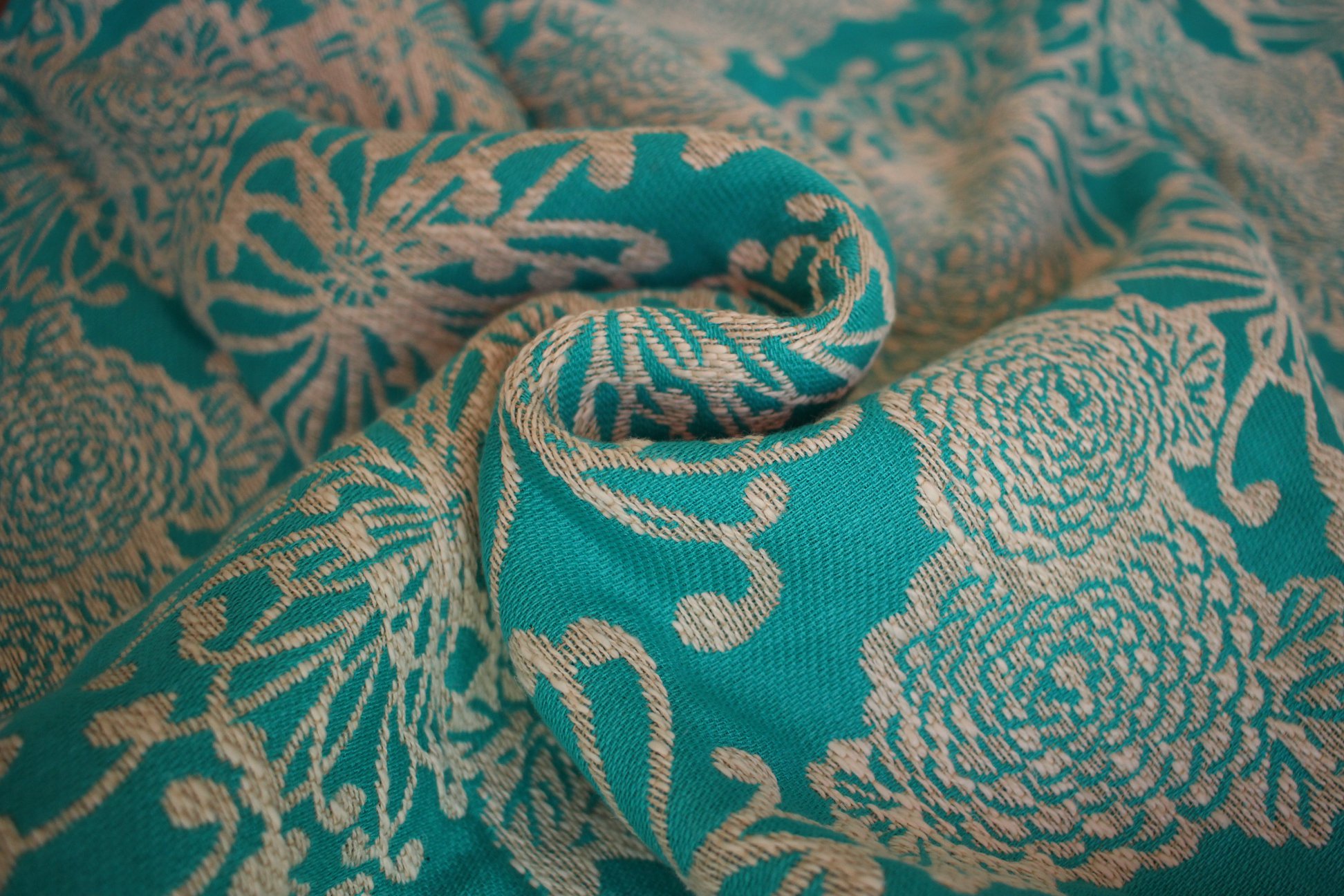 Yaro Chrys Puffy Aqua Natural Hemp – Vacker sjal i härliga nyanser. Det puffiga garnet i sjalen ger en hel del karaktär och ett unikt utseende. Måttlig inbrytningstid krävs, men redan efter första strykningen märks skillnad. Med varje användningstillfälle blir den mjukare och fluffigare. Den känns tung och tjock i handen och har ett fantastiskt grepp. Passar för alla åldrar, men bäst från 3 månader och uppåt. Med en ringsjal kan du snabbt och lätt bära ditt barn, du trär tyget genom ringarna, sätter i barnet och spänner enligt instruktionerna.