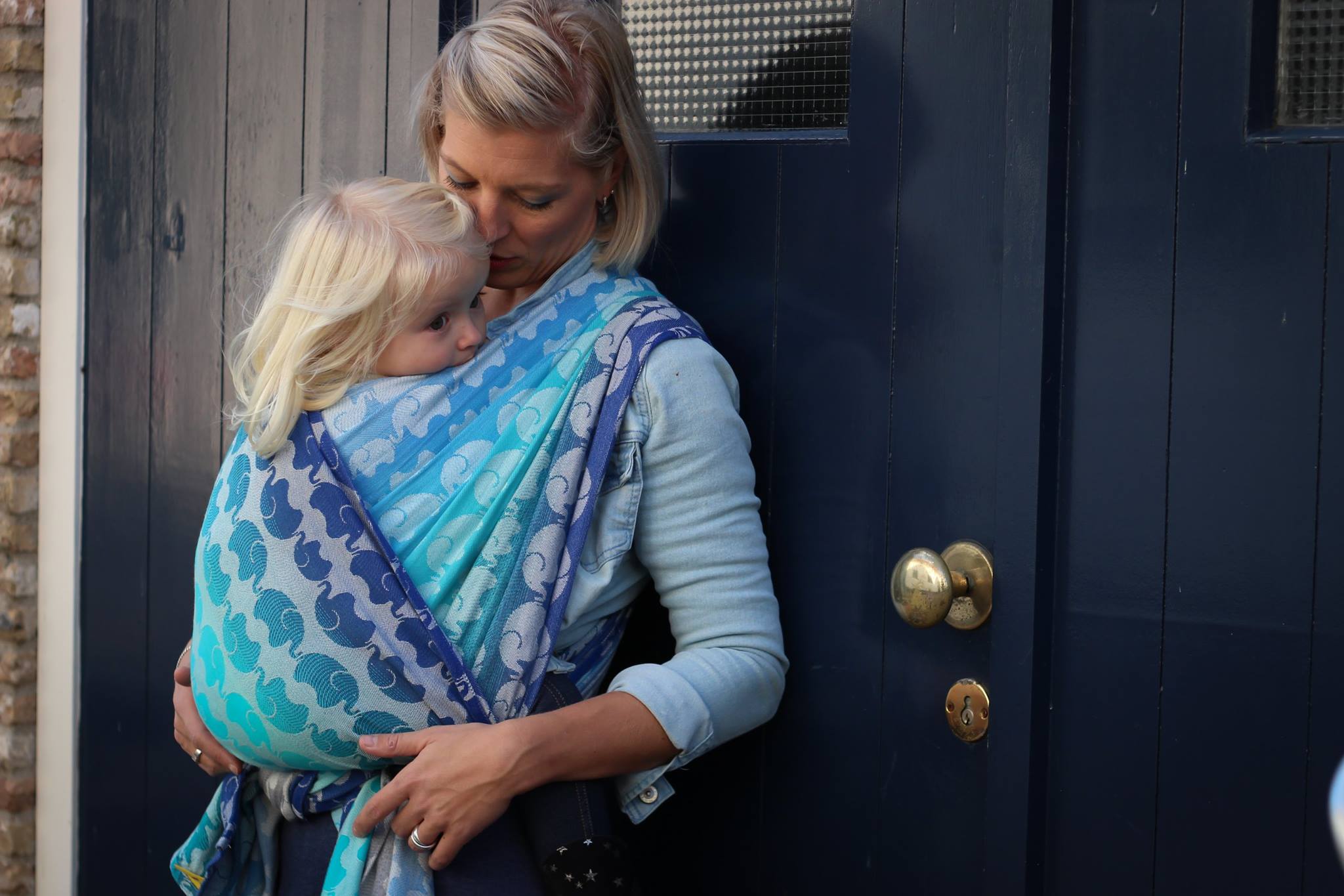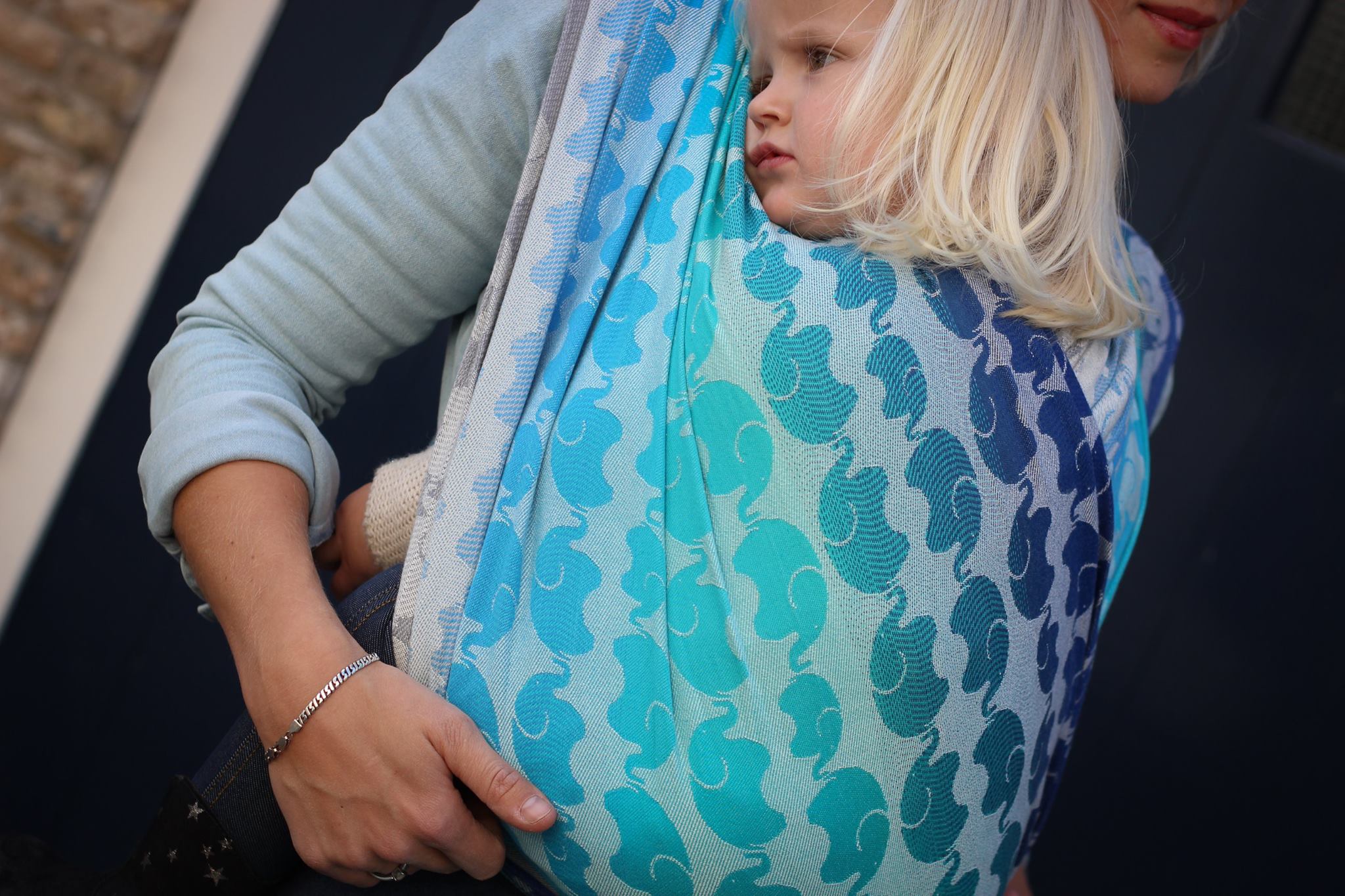 Med en ringsjal kan du snabbt och lätt bära ditt barn, du trär tyget genom ringarna, sätter i barnet och spänner enligt instruktionerna. Observera att det inte är rekommenderat att bära barnet i position “vagga” då det kan leda till att barnet inte får fria luftvägar.