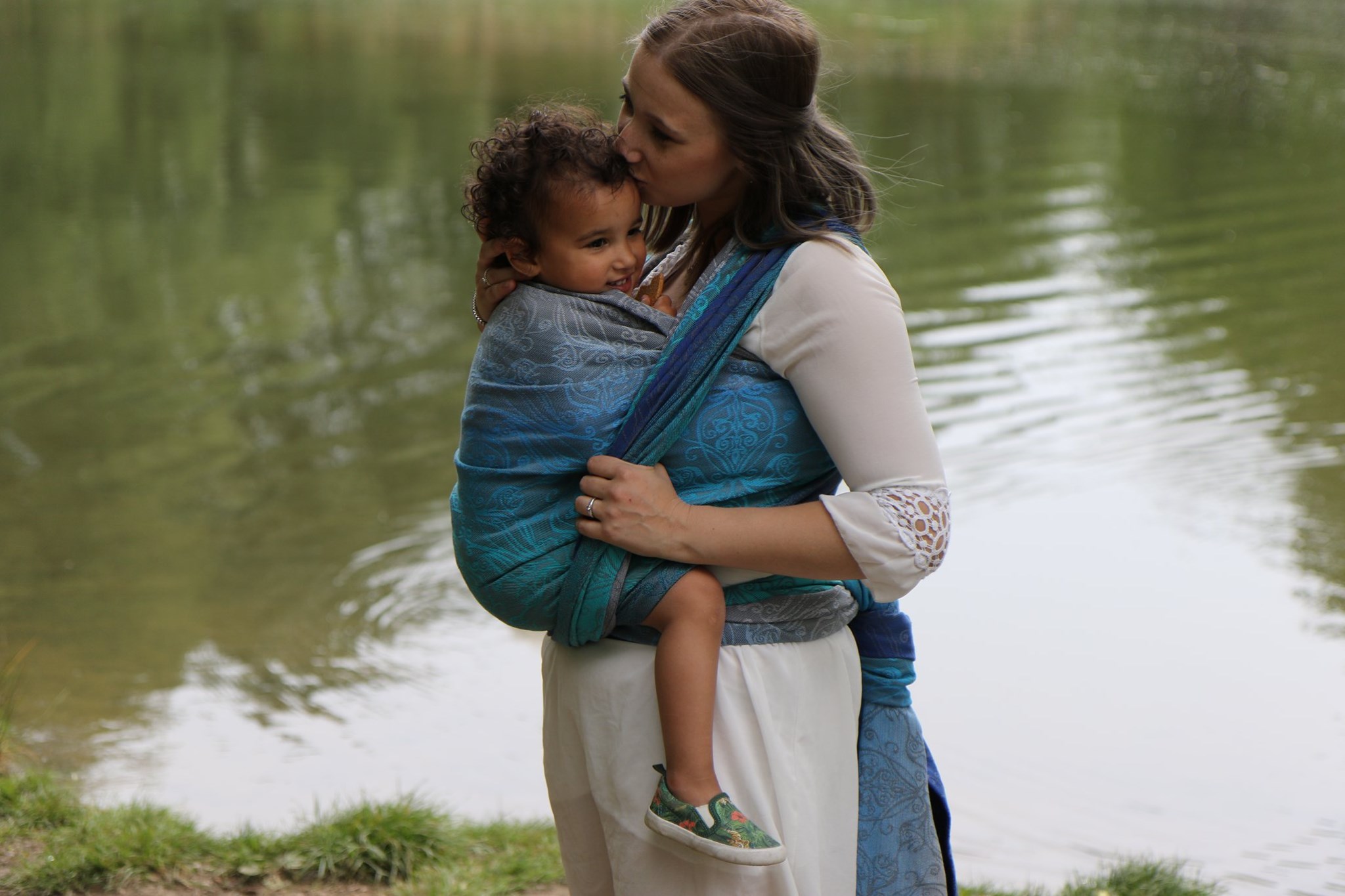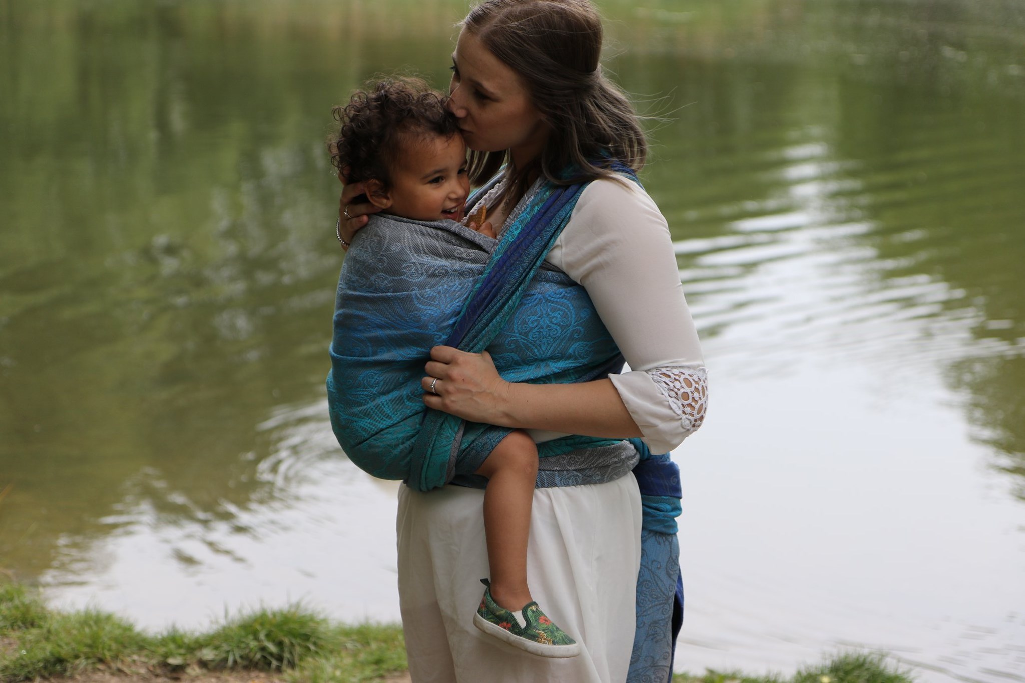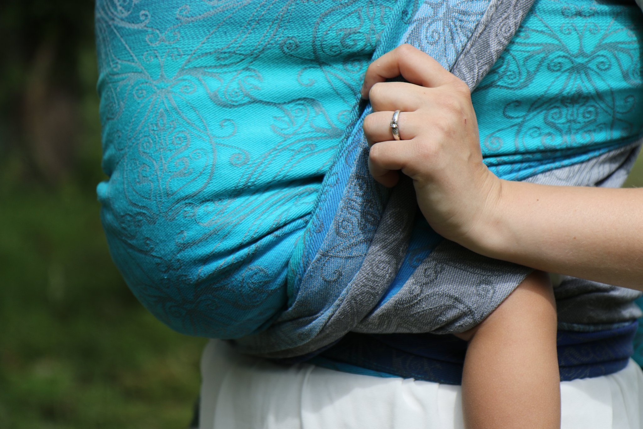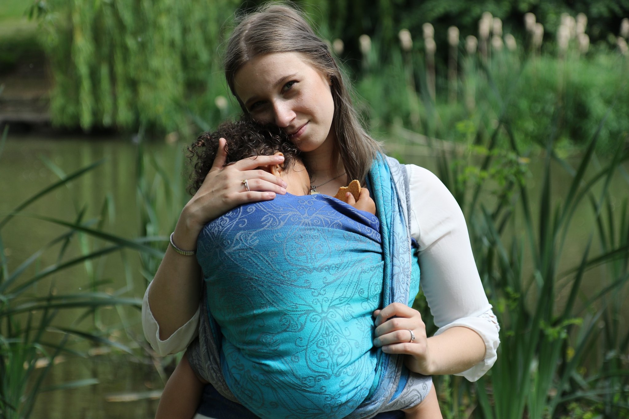 Med en ringsjal kan du snabbt och lätt bära ditt barn, du trär tyget genom ringarna, sätter i barnet och spänner enligt instruktionerna. Observera att det inte är rekommenderat att bära barnet i position “vagga” då det kan leda till att barnet inte får fria luftvägar.