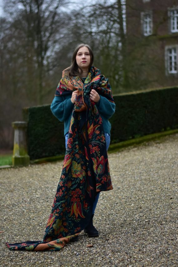 Bilderna visar en vävd långsjal men denna produkt avser en ringsjal i likadant tyg.
