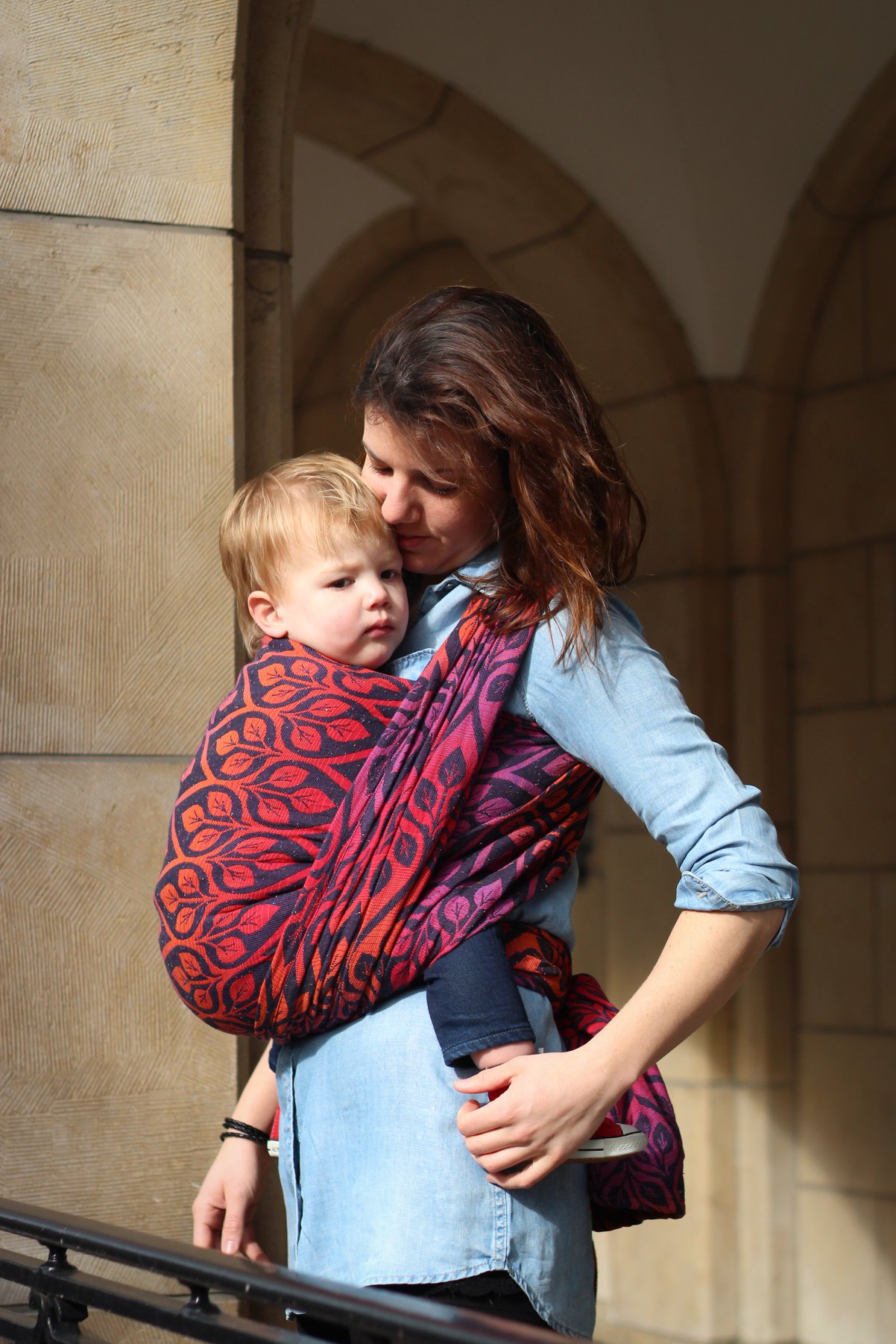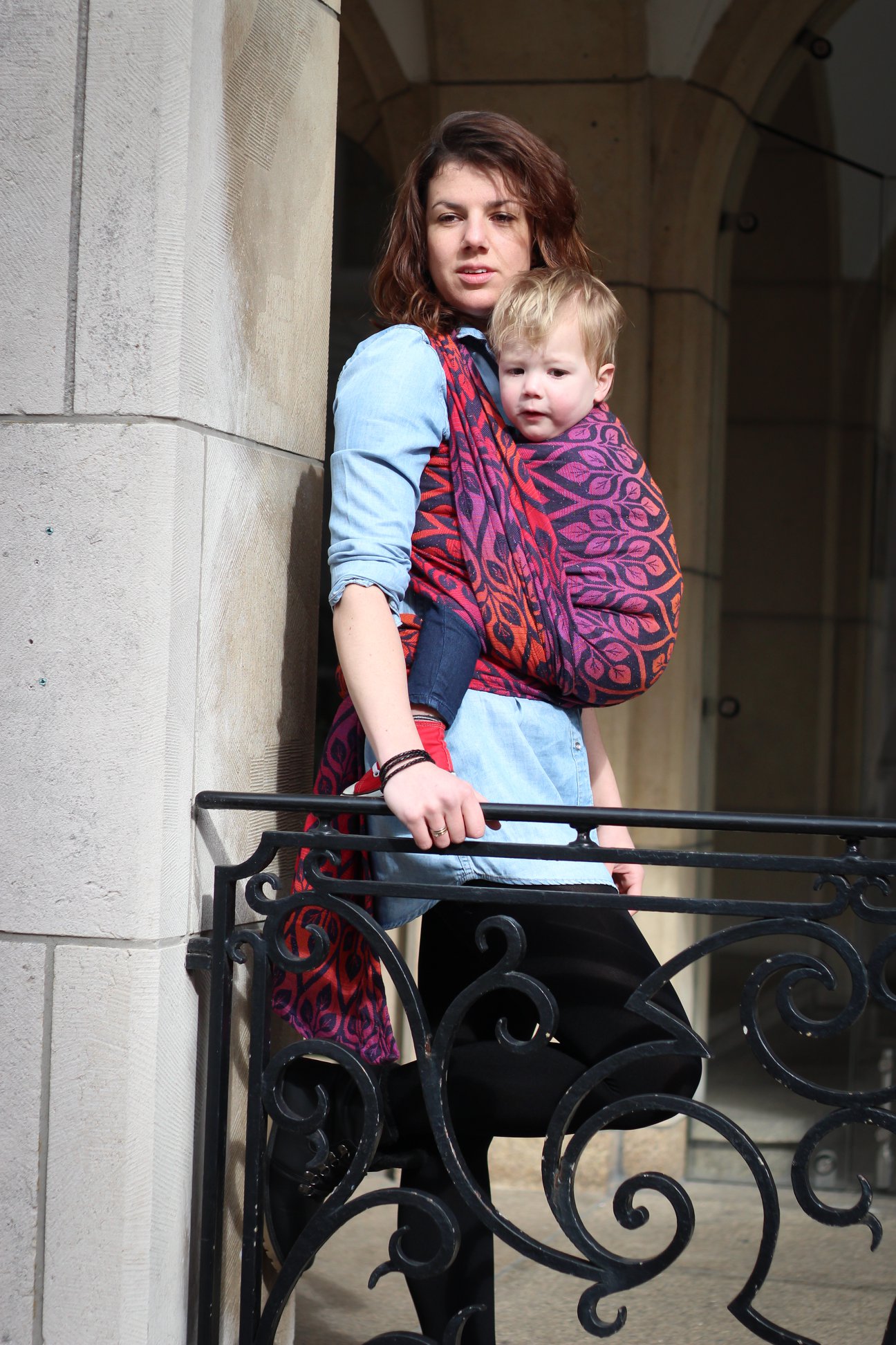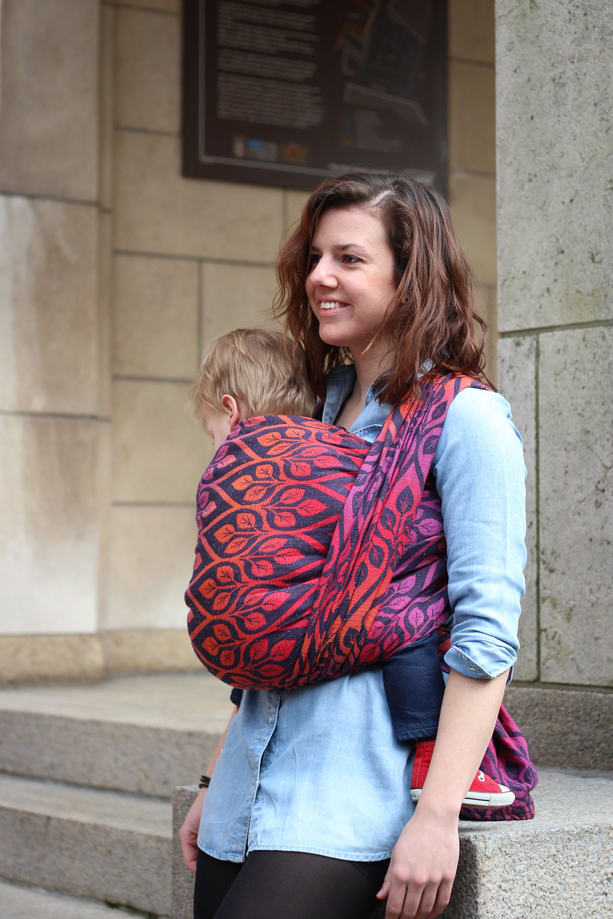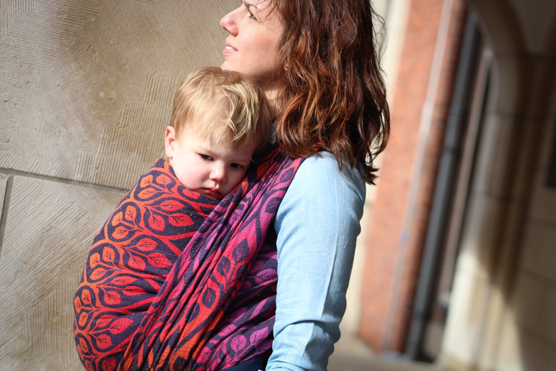 Med en ringsjal kan du snabbt och lätt bära ditt barn, du trär tyget genom ringarna, sätter i barnet och spänner enligt instruktionerna. Observera att det inte är rekommenderat att bära barnet i position “vagga” då det kan leda till att barnet inte får fria luftvägar.