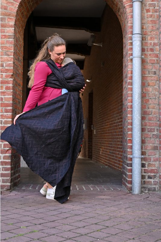 Med en ringsjal kan du snabbt och lätt bära ditt barn, du trär tyget genom ringarna, sätter i barnet och spänner enligt instruktionerna. Observera att det inte är rekommenderat att bära barnet i position “vagga” då det kan leda till att barnet inte får fria luftvägar.