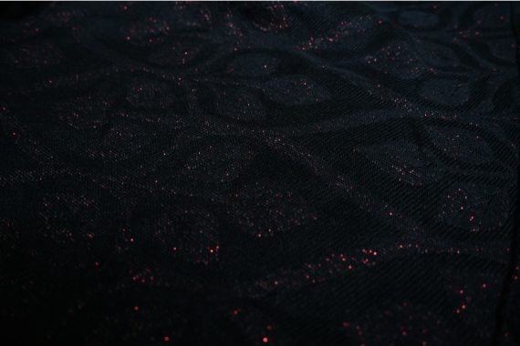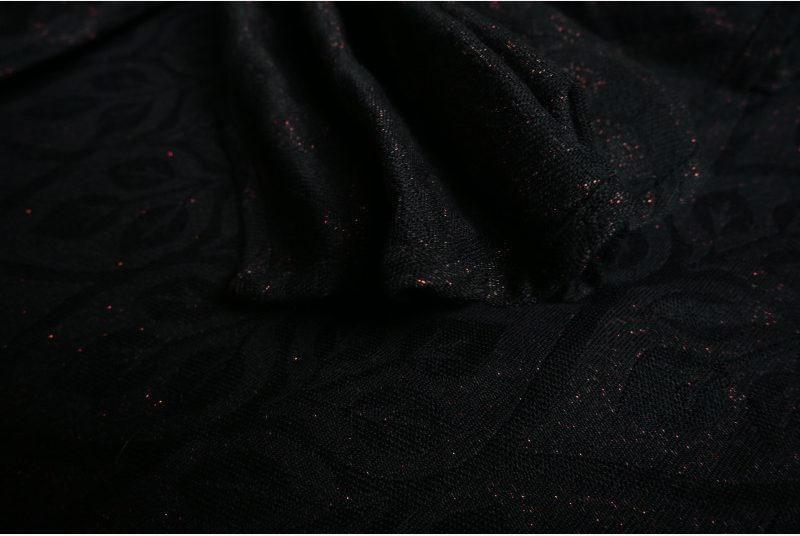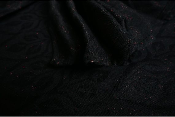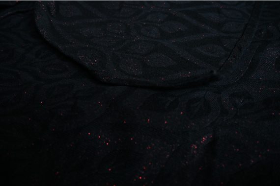 Svart ringsjal i mönstret La Vita med rött glitter som gör sjalen unik.