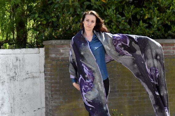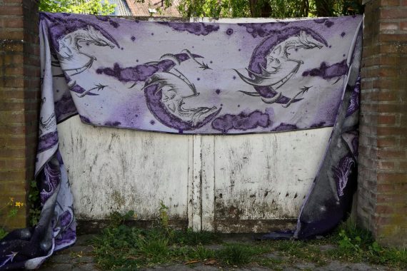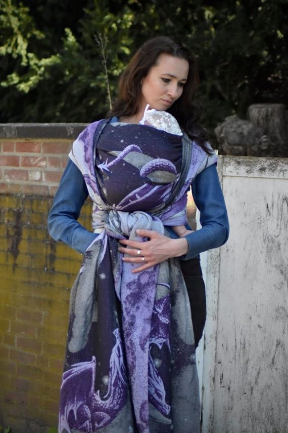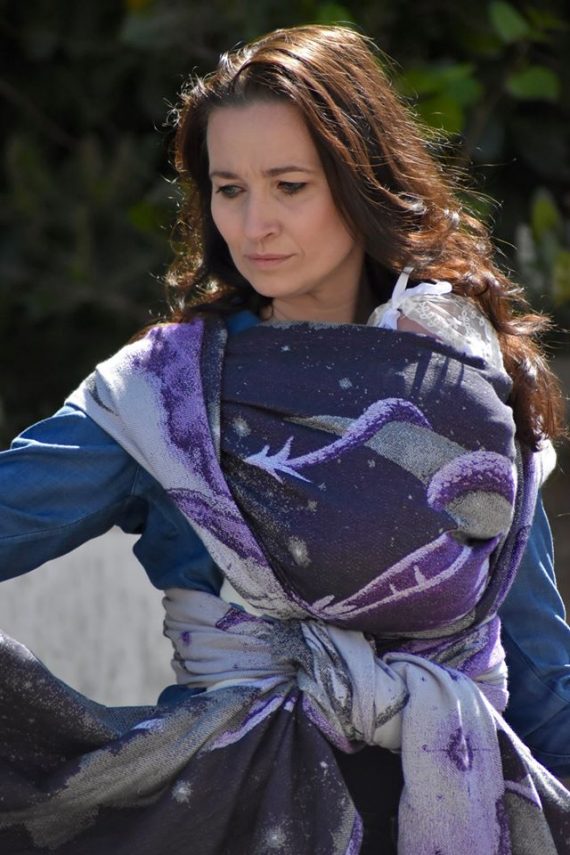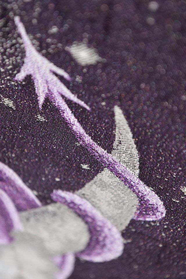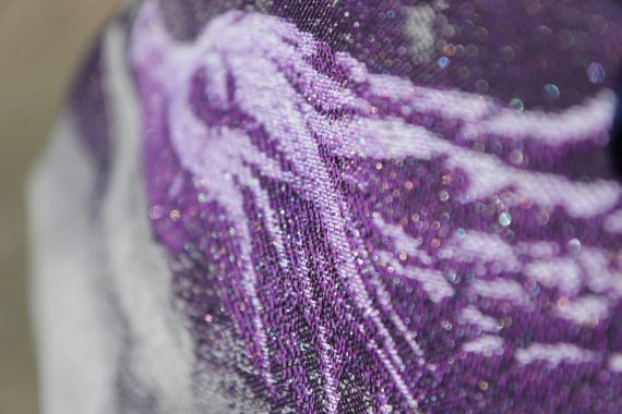 Moonkeeper heter detta nya mönster från Yaro, vävtekniken kallas Trinity och är en vidareutveckling av dubbelskiktade tyger såsom ultra- och contravväv. Denna vävteknik möjliggör fler färggraderingar, bredare variation av garn och ett desto mjukare tyg. Denna sjal graderar i djupa och ljusa lila nyanser. Ute i solen kommer den verkligen stråla och visa sin skönhet. Glitter invävt i sjalen bidrar med mer magi. Mediumtjock sjal som passar bra för små bebisar likväl som större barn. Passar alla erfarenhetsnivåer.