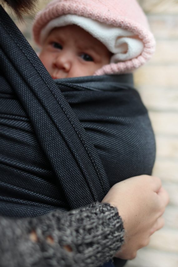 Yaro Ringsjal Newborn Grey Black – En ringsjal utarbetad för att passa nyfödda och föräldrar som är nybörjare på sjal. Vidden på sjalen är endast 60 cm, vilket förenklar när man ska bära en liten bebis. Den har också en s.k learning stripe som förenklar när man ska lära sig. Redan efter första tvätten blir den mjuk och kräver minimal inbrytning.