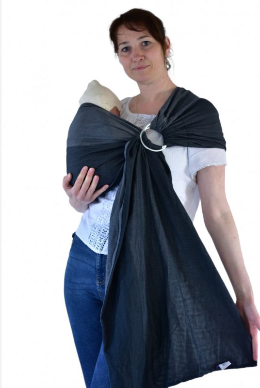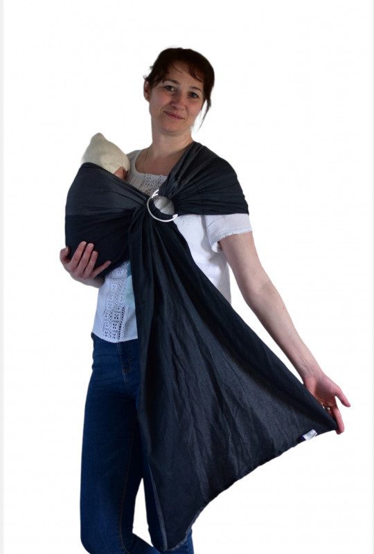 Med en ringsjal kan du snabbt och lätt bära ditt barn, du trär tyget genom ringarna, sätter i barnet och spänner enligt instruktionerna. Observera att det inte är rekommenderat att bära barnet i position “vagga” då det kan leda till att barnet inte får fria luftvägar.