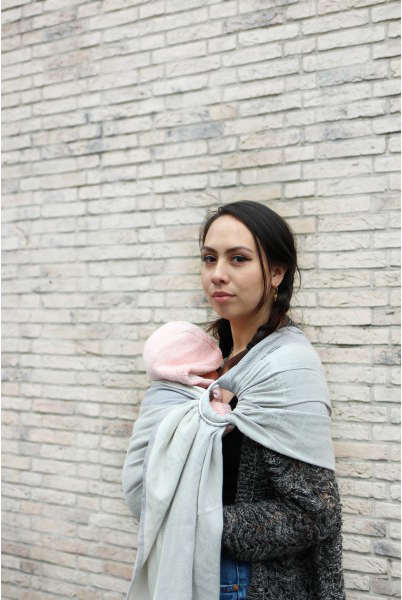 Med en ringsjal kan du snabbt och lätt bära ditt barn, du trär tyget genom ringarna, sätter i barnet och spänner enligt instruktionerna. Observera att det inte är rekommenderat att bära barnet i position “vagga” då det kan leda till att barnet inte får fria luftvägar.