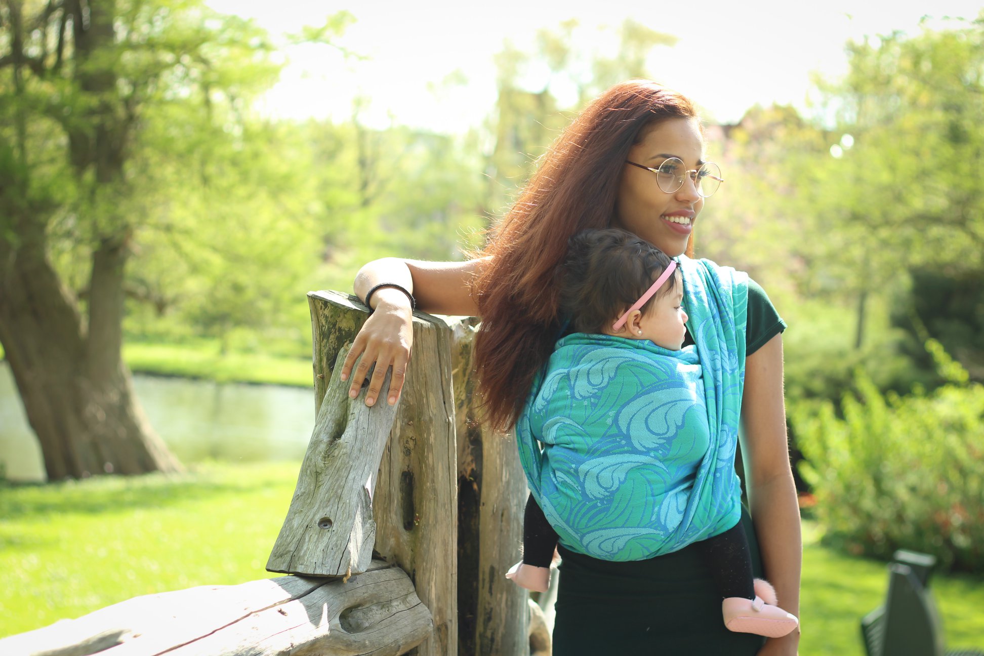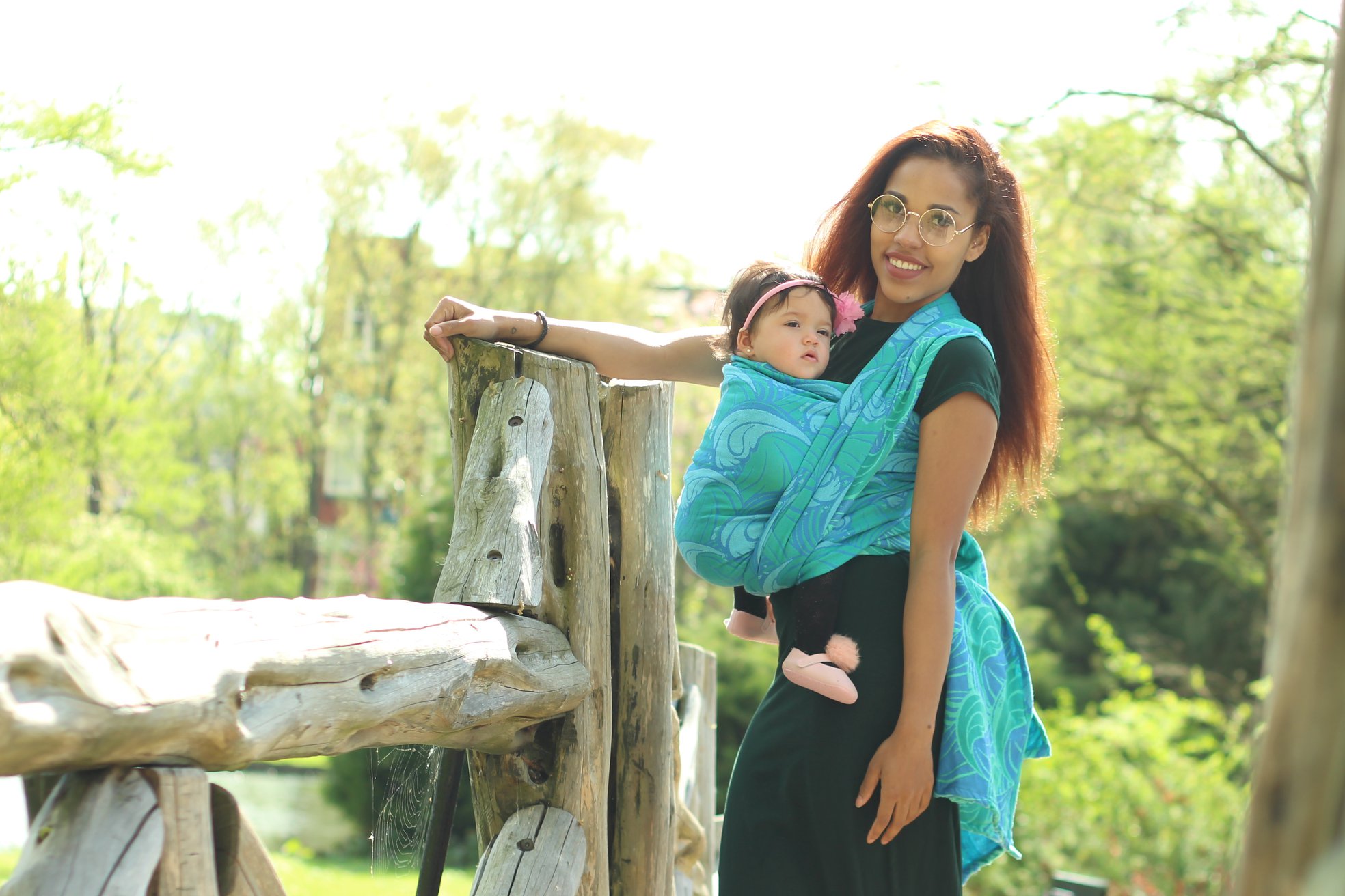 Med en ringsjal kan du snabbt och lätt bära ditt barn, du trär tyget genom ringarna, sätter i barnet och spänner enligt instruktionerna. Observera att det inte är rekommenderat att bära barnet i position “vagga” då det kan leda till att barnet inte får fria luftvägar.