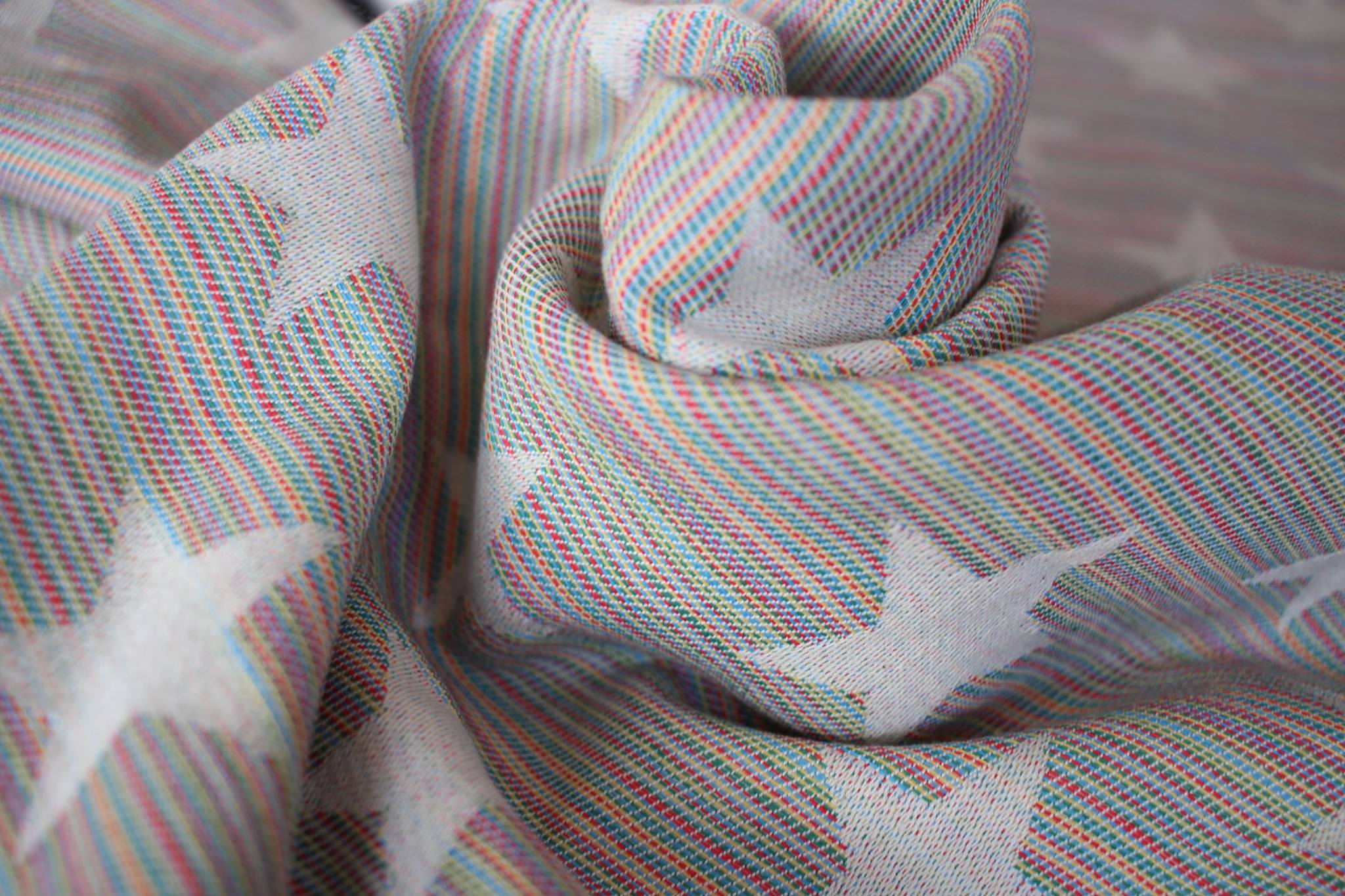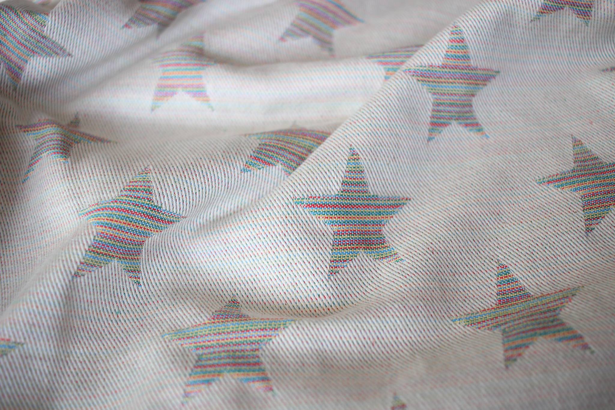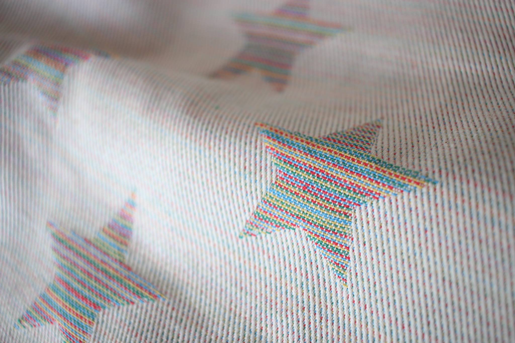 Flerfärgade stjärnor mot en lugn botten, lekfull men ändå lugn och stilfull. Passar bra från nyfödd och upp till dina egna preferenser. Lätt att bryta in. Passar bra året-om.