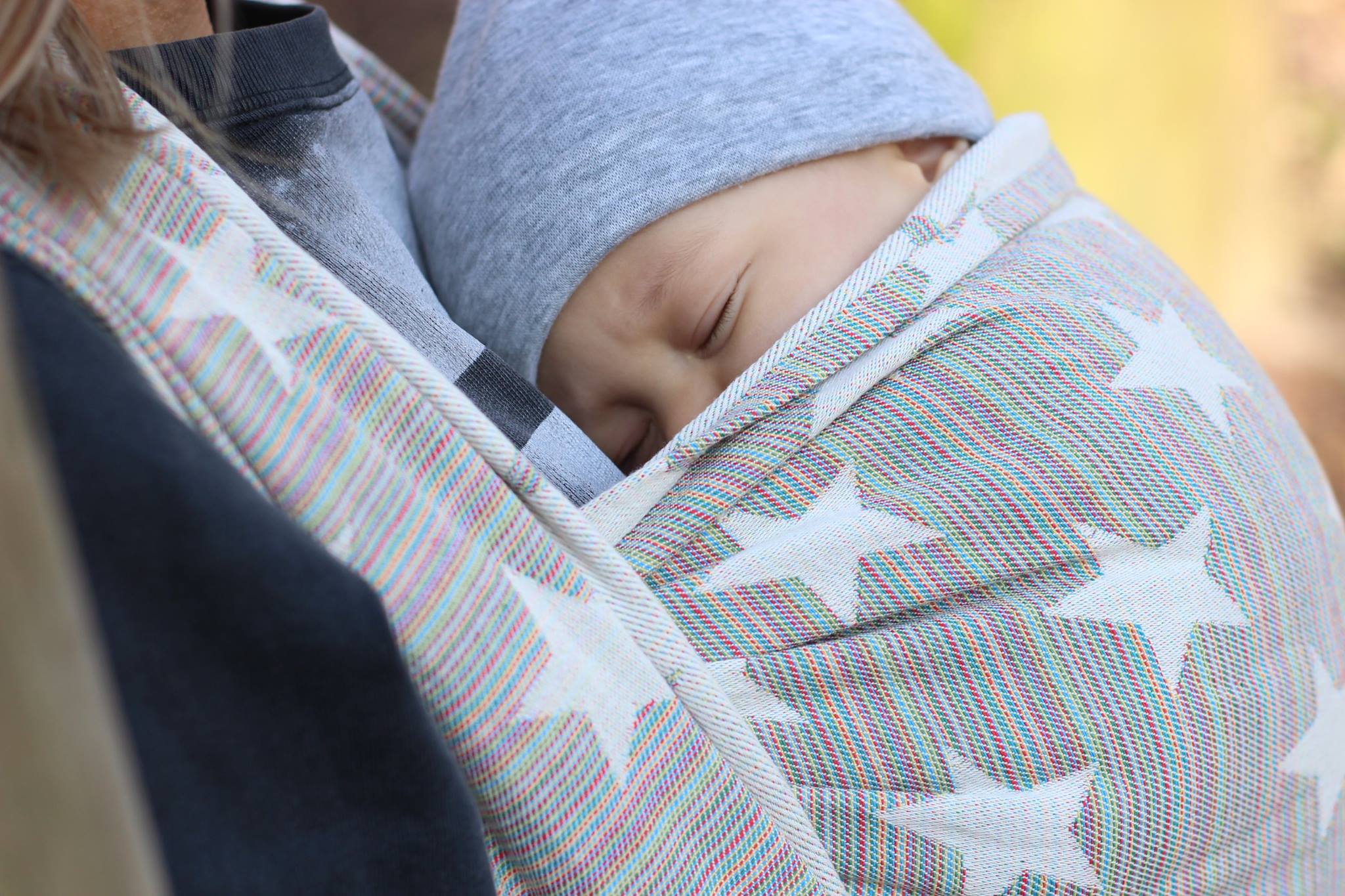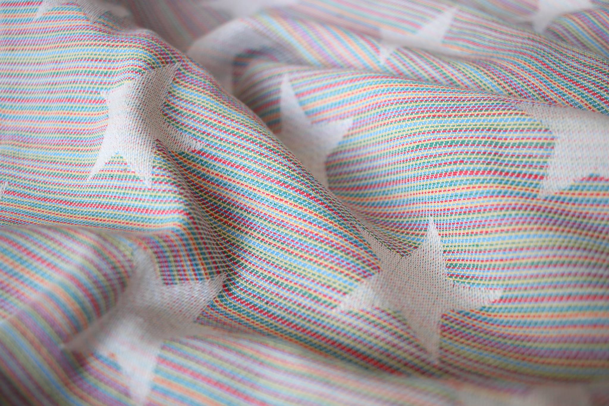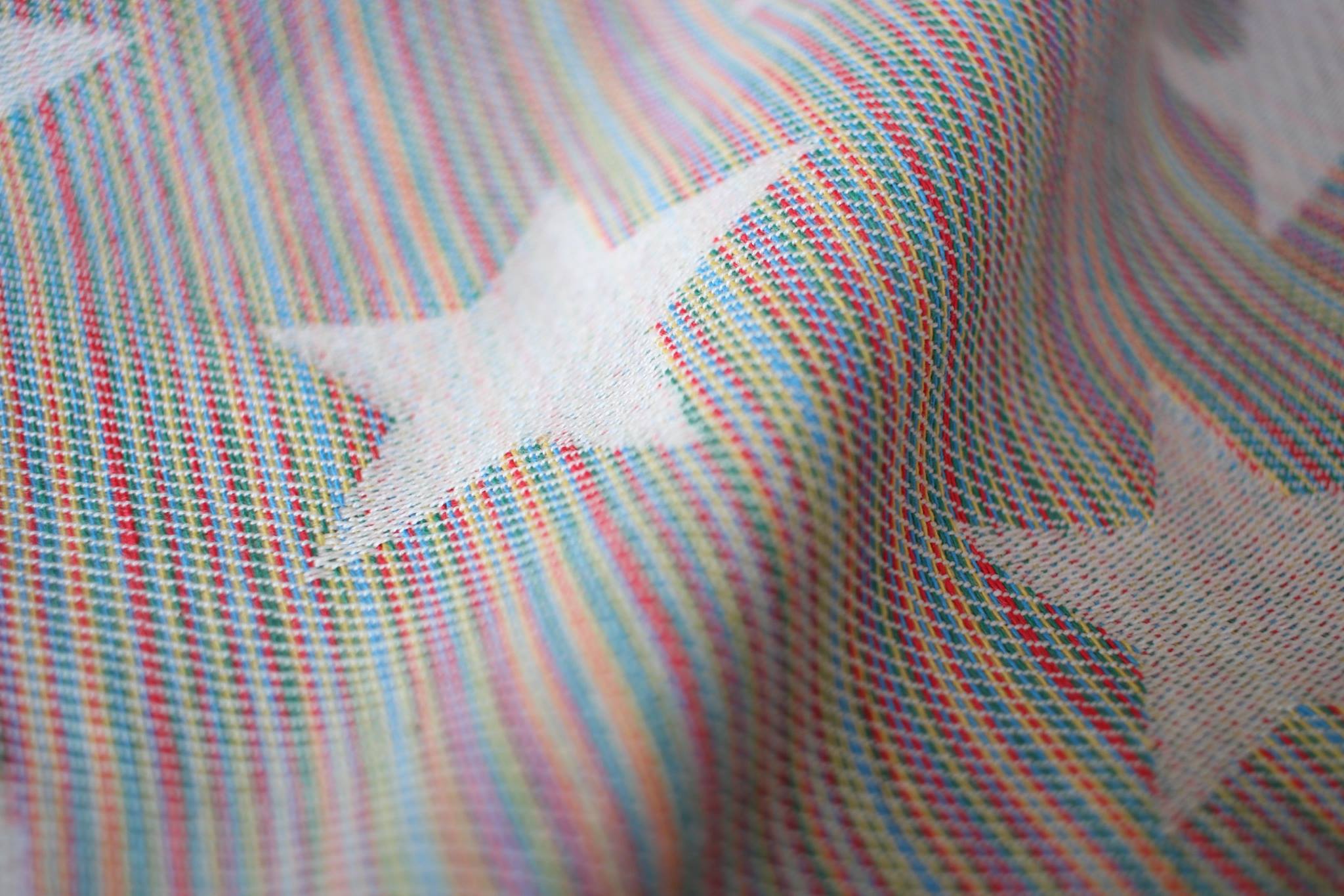 Flerfärgade stjärnor mot en lugn botten, lekfull men ändå lugn och stilfull. Passar bra från nyfödd och upp till dina egna preferenser. Lätt att bryta in. Passar bra året-om.