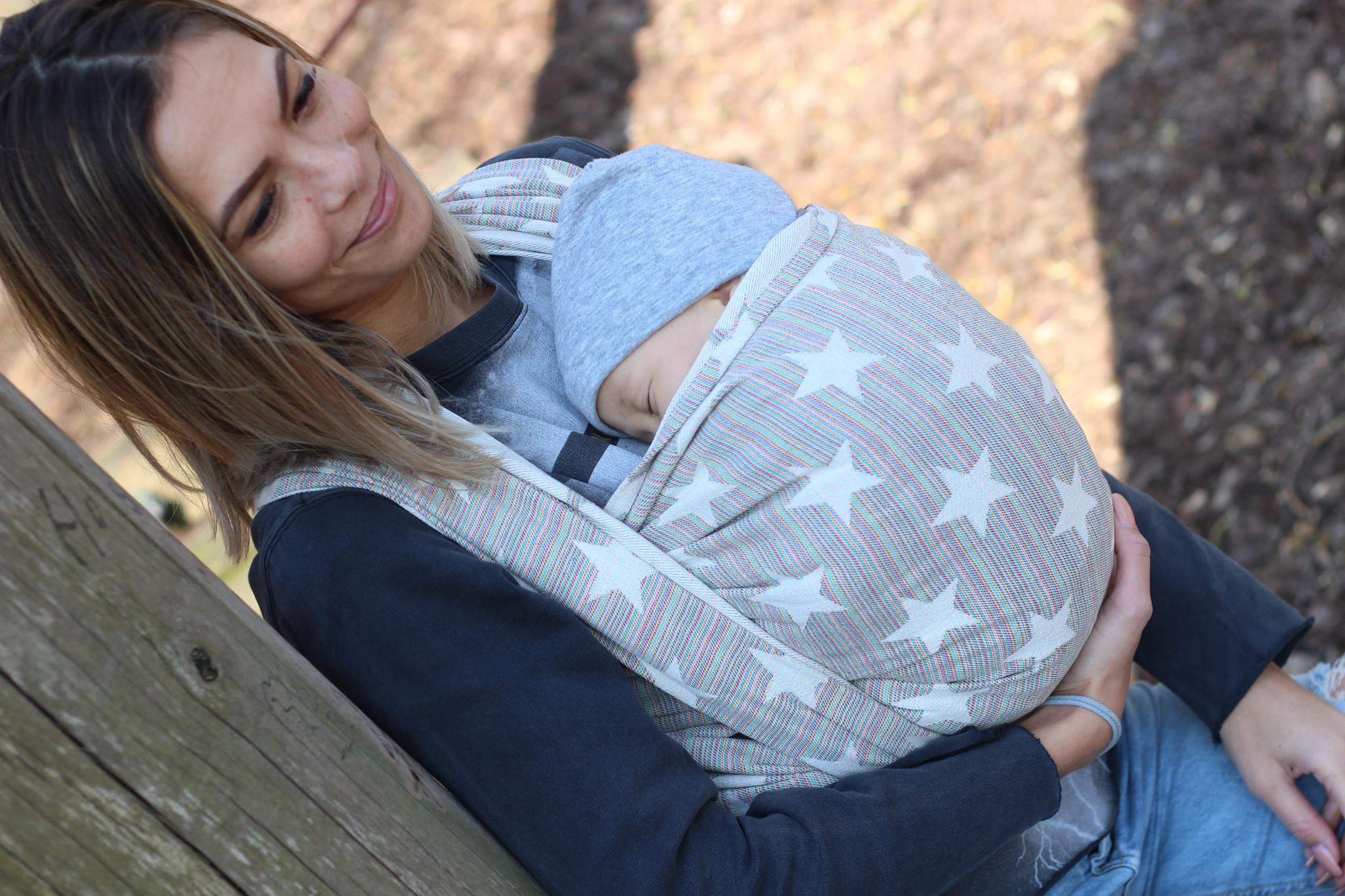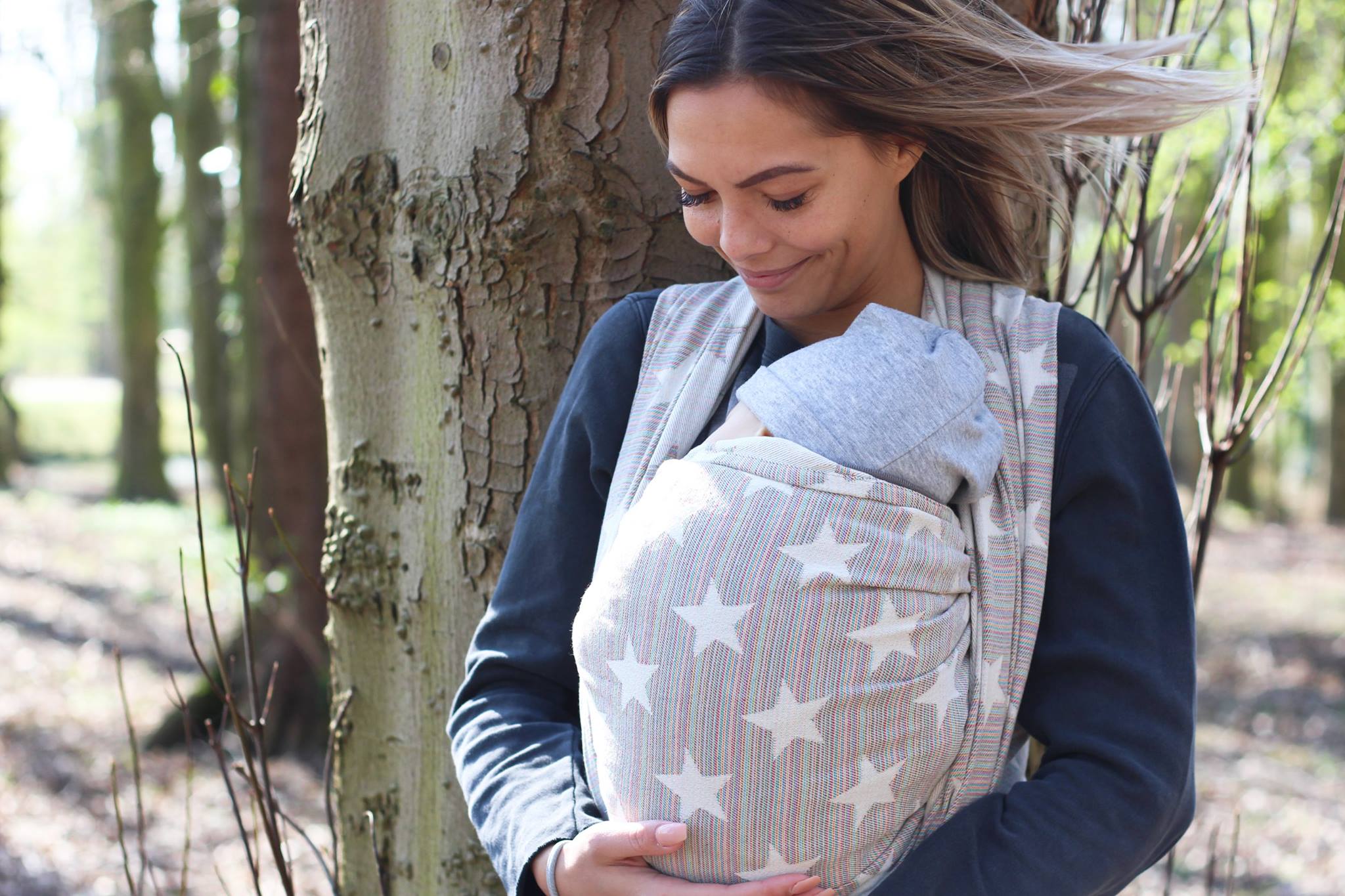 Med en ringsjal kan du snabbt och lätt bära ditt barn, du trär tyget genom ringarna, sätter i barnet och spänner enligt instruktionerna. Observera att det inte är rekommenderat att bära barnet i position “vagga” då det kan leda till att barnet inte får fria luftvägar.
