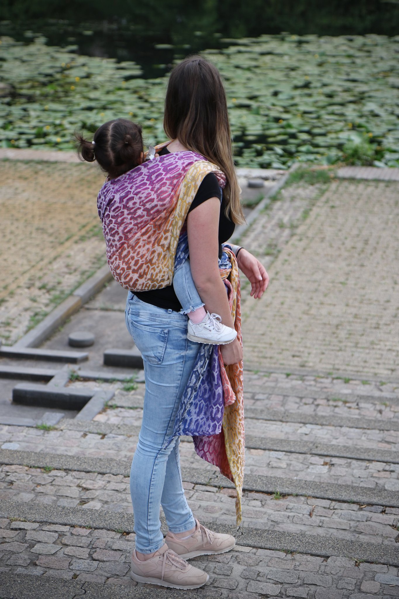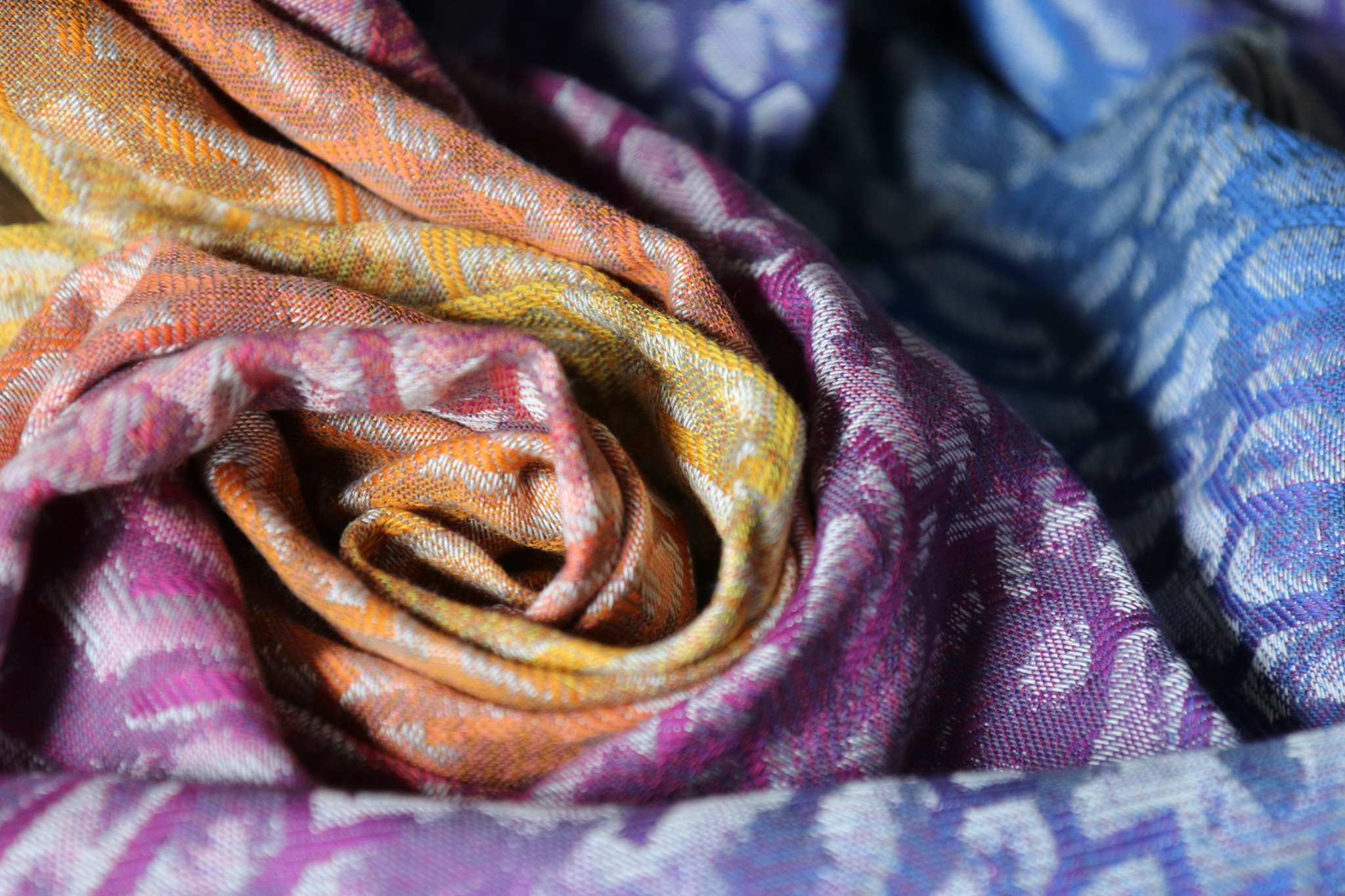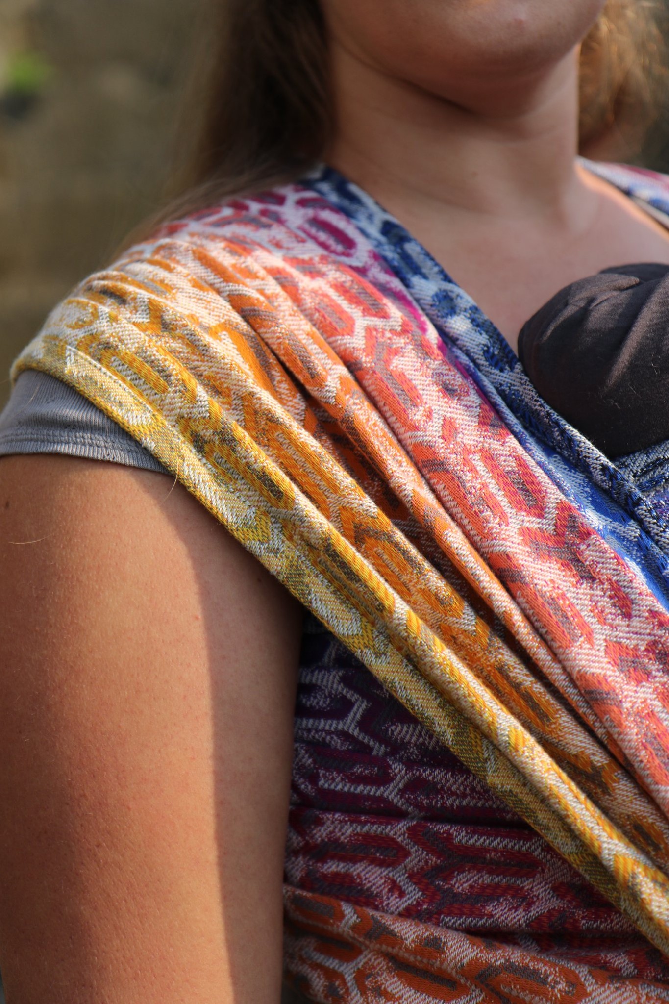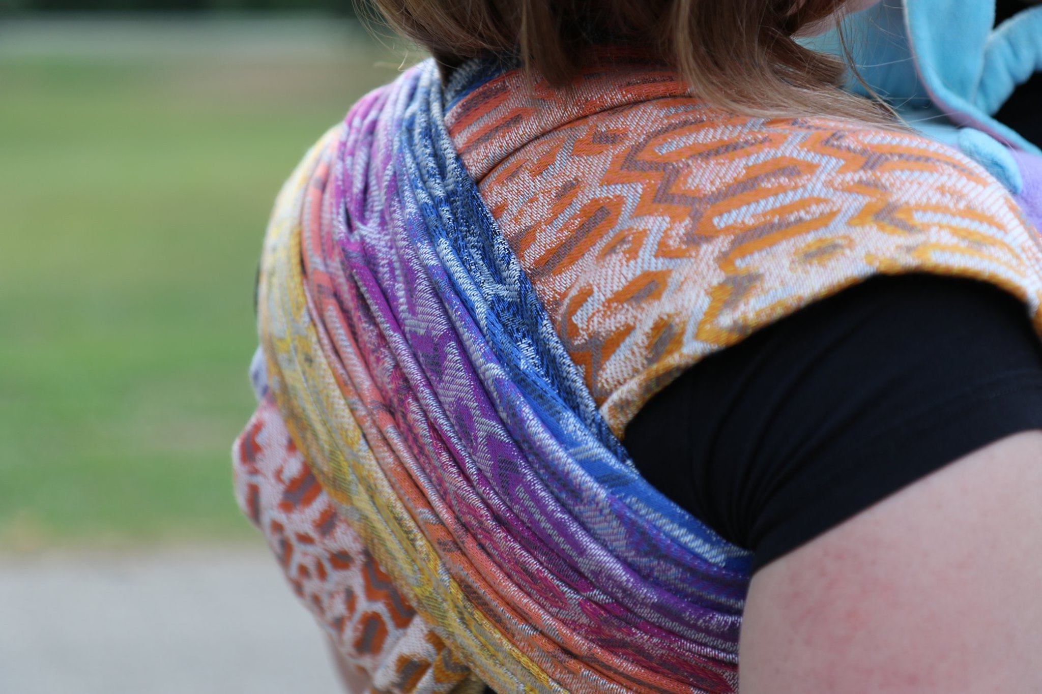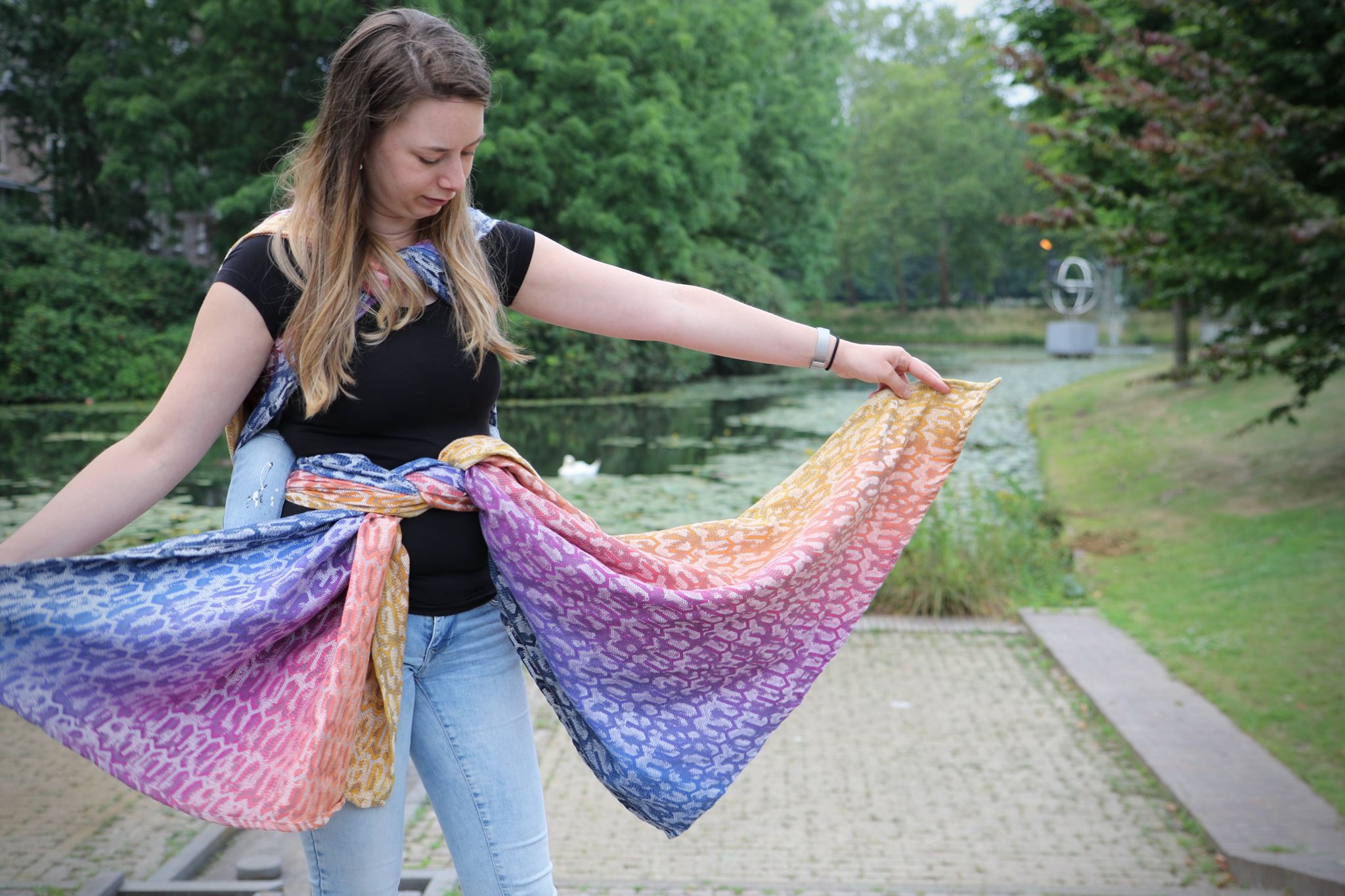 Med en ringsjal kan du snabbt och lätt bära ditt barn, du trär tyget genom ringarna, sätter i barnet och spänner enligt instruktionerna. Observera att det inte är rekommenderat att bära barnet i position “vagga” då det kan leda till att barnet inte får fria luftvägar.