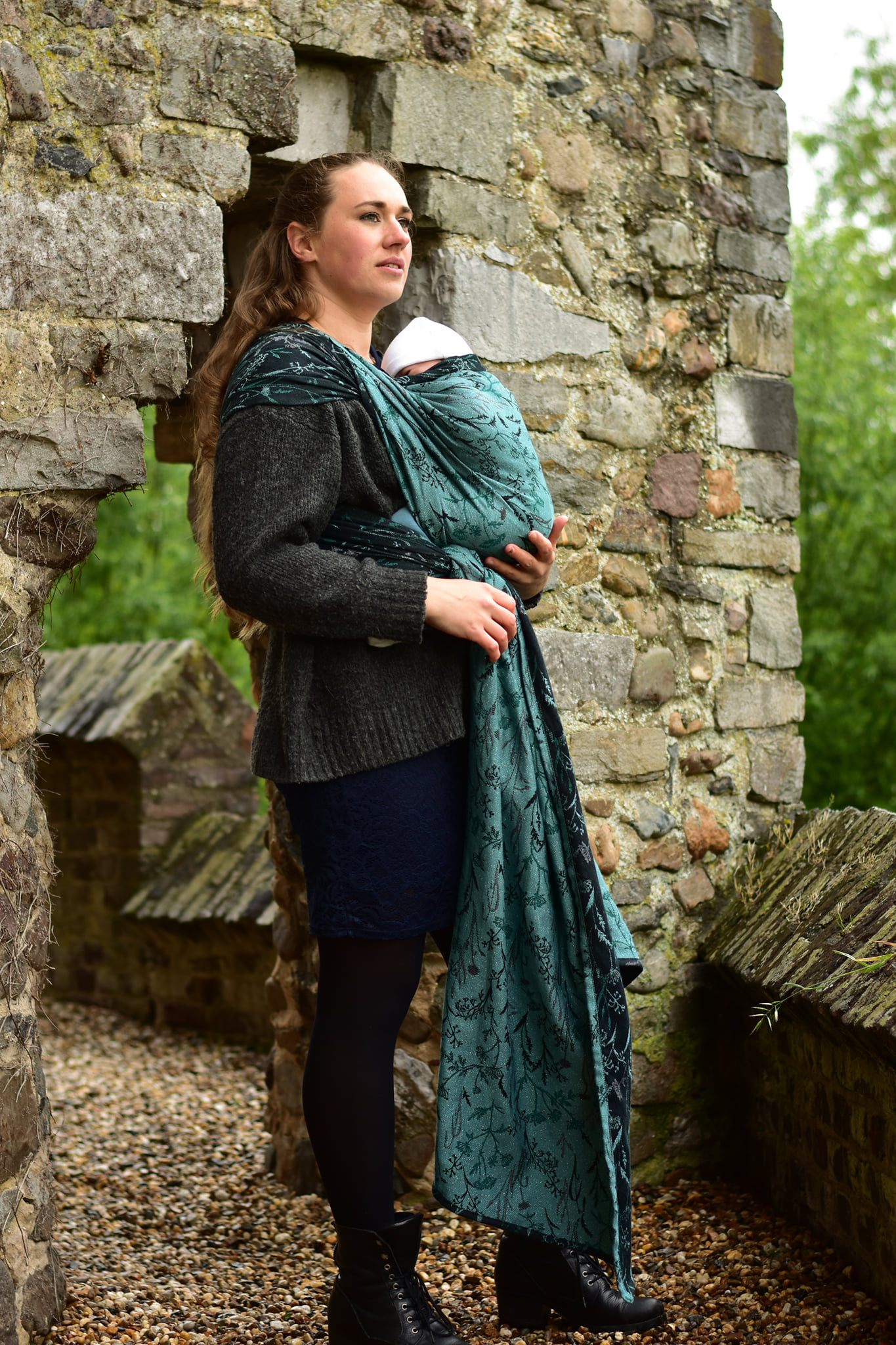 Med en ringsjal kan du snabbt och lätt bära ditt barn, du trär tyget genom ringarna, sätter i barnet och spänner enligt instruktionerna. Observera att det inte är rekommenderat att bära barnet i position “vagga” då det kan leda till att barnet inte får fria luftvägar.