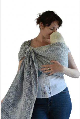 Med en ringsjal kan du snabbt och lätt bära ditt barn, du trär tyget genom ringarna, sätter i barnet och spänner enligt instruktionerna. Observera att det inte är rekommenderat att bära barnet i position “vagga” då det kan leda till att barnet inte får fria luftvägar.