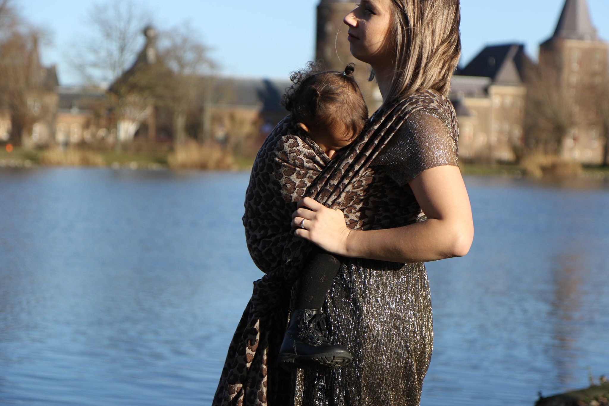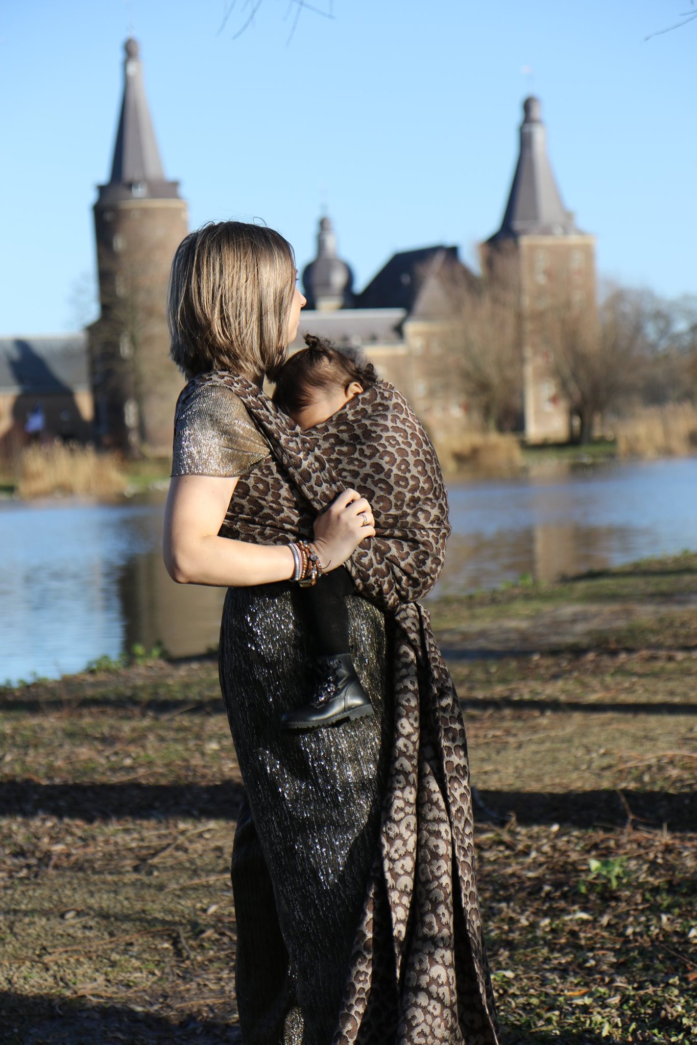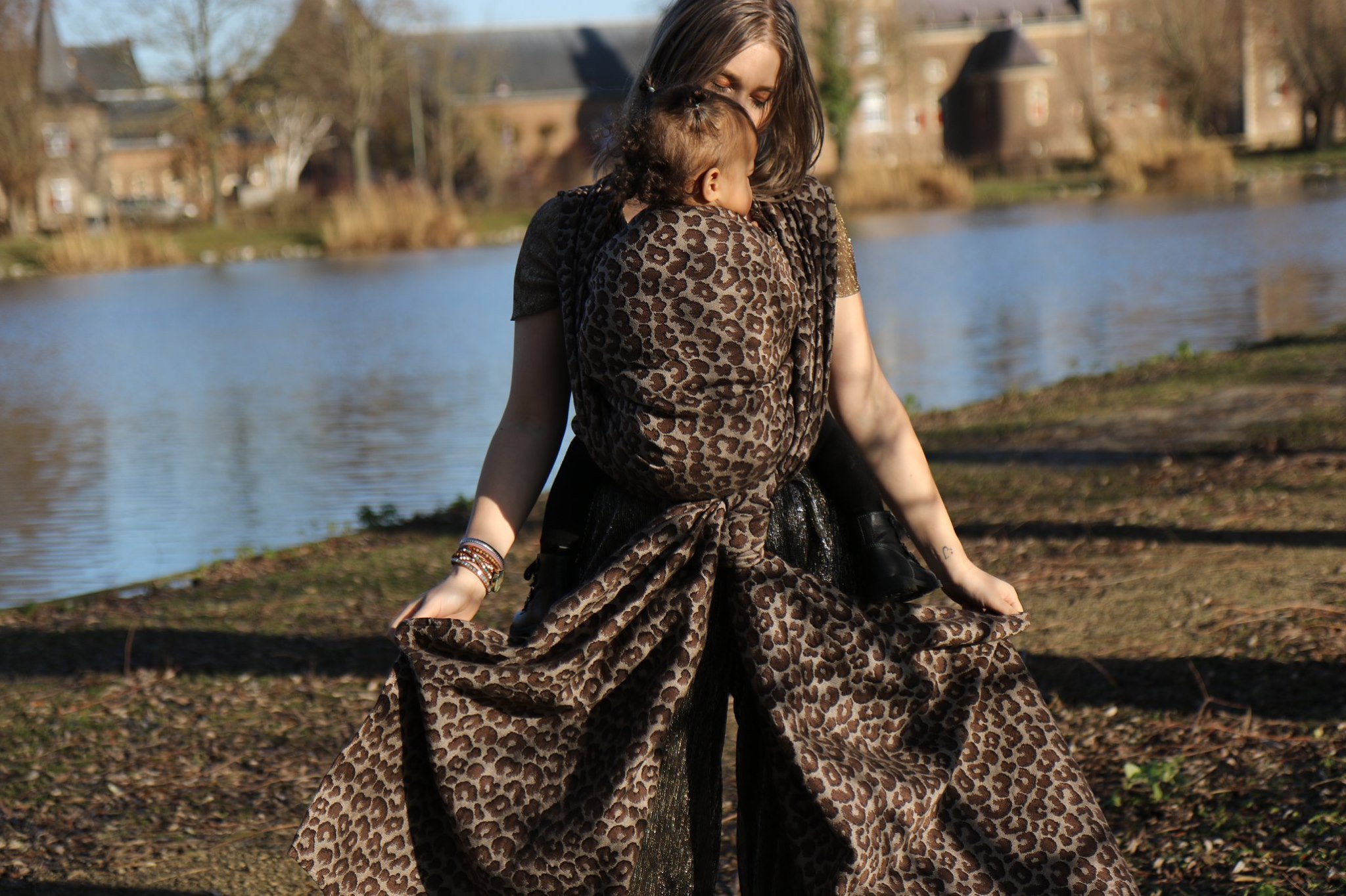 Med en ringsjal kan du snabbt och lätt bära ditt barn, du trär tyget genom ringarna, sätter i barnet och spänner enligt instruktionerna. Observera att det inte är rekommenderat att bära barnet i position “vagga” då det kan leda till att barnet inte får fria luftvägar.