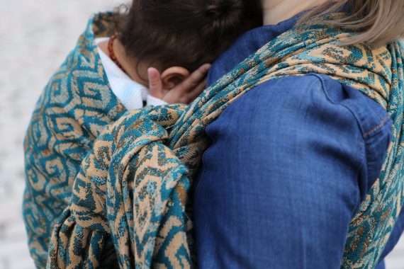 Med en ringsjal kan du snabbt och lätt bära ditt barn, du trär tyget genom ringarna, sätter i barnet och spänner enligt instruktionerna. Observera att det inte är rekommenderat att bära barnet i position “vagga” då det kan leda till att barnet inte får fria luftvägar.