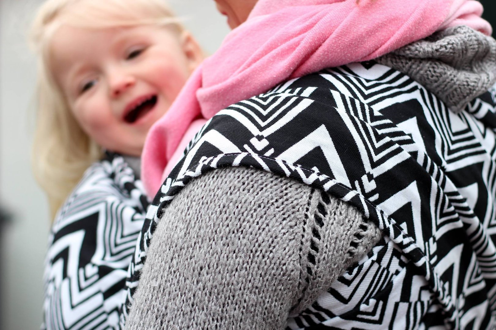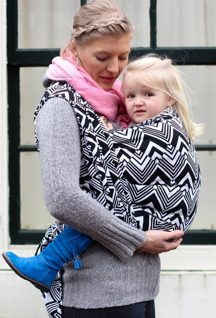 Med en ringsjal kan du snabbt och lätt bära ditt barn, du trär tyget genom ringarna, sätter i barnet och spänner enligt instruktionerna. Observera att det inte är rekommenderat att bära barnet i position “vagga” då det kan leda till att barnet inte får fria luftvägar.