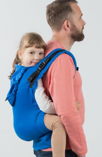 Ditt barn sitter ergonomiskt där rumpan är nedanför knäna och barnet har stöd ut till knävecken. Detta ger avlastning åt barnets höfter och rygg. Att bära sitt barn är inte bara mysigt det är praktiskt också.