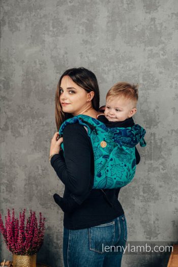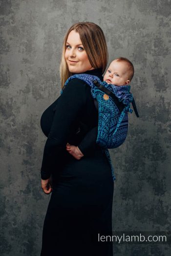 Enkel och lättviktig konstruktion, utan höftbälte – Passar dig som vill ha minimalt med band och inställningar. Även bra för dig som är gravid eller perioder då du inte vill ha tryck mot magen. Det är enkelt att justera bredden på tyget som omfamnar ditt barn, vilket gör att den växer med ditt barn och du kan använda den längre. Axelbanden är vadderade och justerbara för att erbjuda en bra passform för dig som bär, oavsett storlek. En fastsydd huva som är bra om barnet tex behöver skydd mot solen.